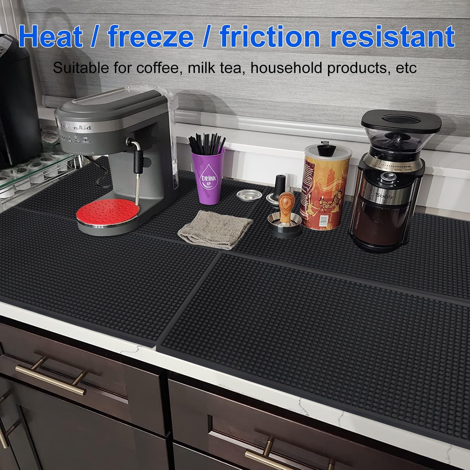 - 【Non-Slip & Protective】 With an anti-slip design, these rubber bar mats for bartending ensure that your drinking and serving utensils stay in place, eliminating the risk of spills. Not only do they keep the countertops clean, but they also protect the surfaces from possible damages.