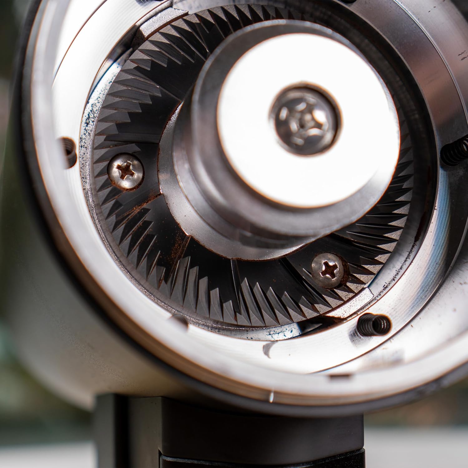- 【New Version 1.2】The chute now comes with a knocker but non-detachable. The previous versions V1.1 has the new outer burr carrier design. The burr carrier is now stabilized by 4 metal guide posts. It grinds more consistently.
