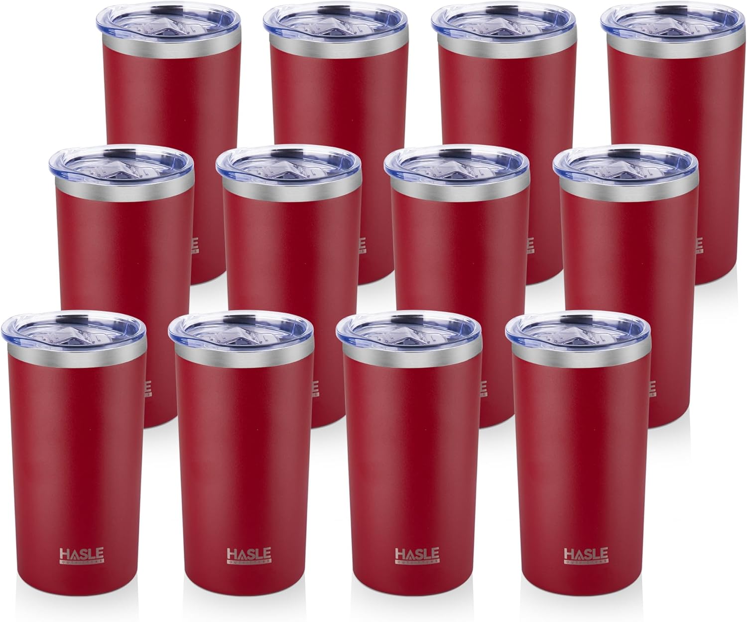 HASLE OUTFITTERS 12 oz Skinny Tumbler, Stainless Steel Insulated Slim Tumbler set bulk with Lid, Reusable Double Wall Travel Coffee Mug, Durable Powder Coated Travel Water Cup(Red,12)