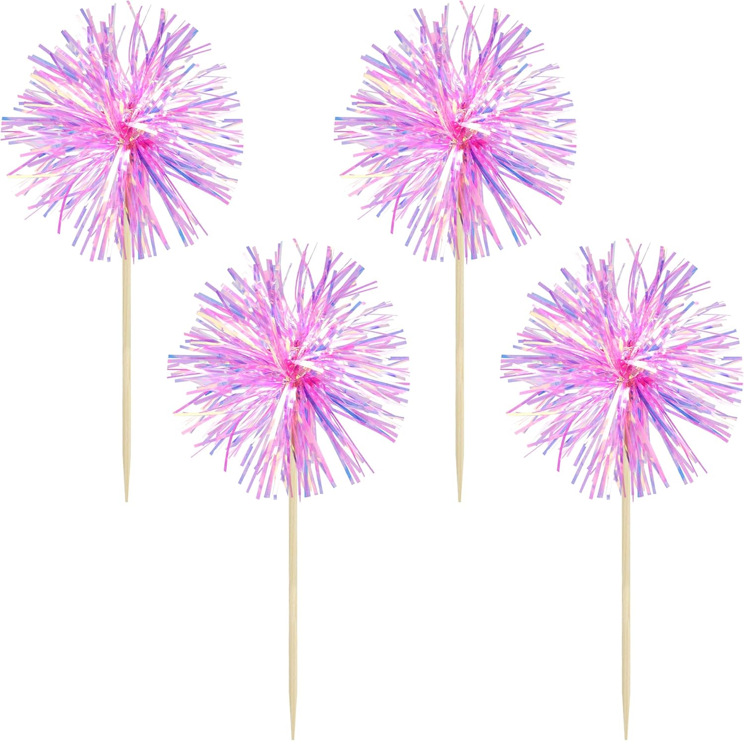 Gyufise 30Pcs Foil Firework Cupcake Toppers Sparkle Tinsel Cake Toppers Tinsel Drink Cake Decoration Cocktail Picks for Birthday Wedding Graduation Party Supplies Laser Rose Red