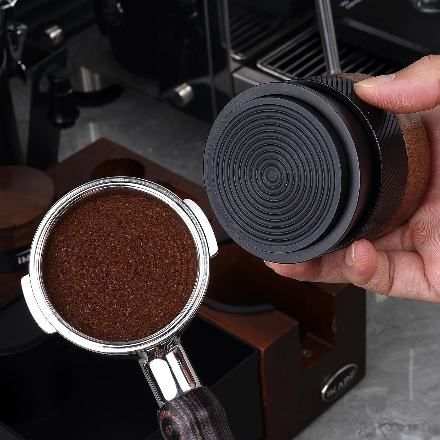 IKAPE 53MM Espresso Tamper, New Wooden Handle Design,Premium Barista Coffee Calibrated Tamper with Spring Loaded, 100% Stainless Steel Tamper Compatible with All 54MM Bottomless Portafilter