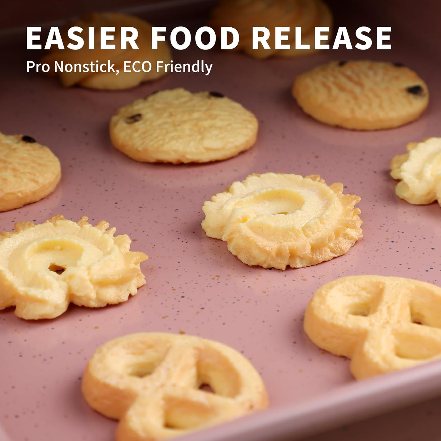 - 🥐Rimmed Border Design- This 1-inch deep non stick baking sheet features a fully rimmed border This rim effectively prevents juices and sauces from spilling into your oven while providing ample airflow and heat distribution for even baking and cookie.