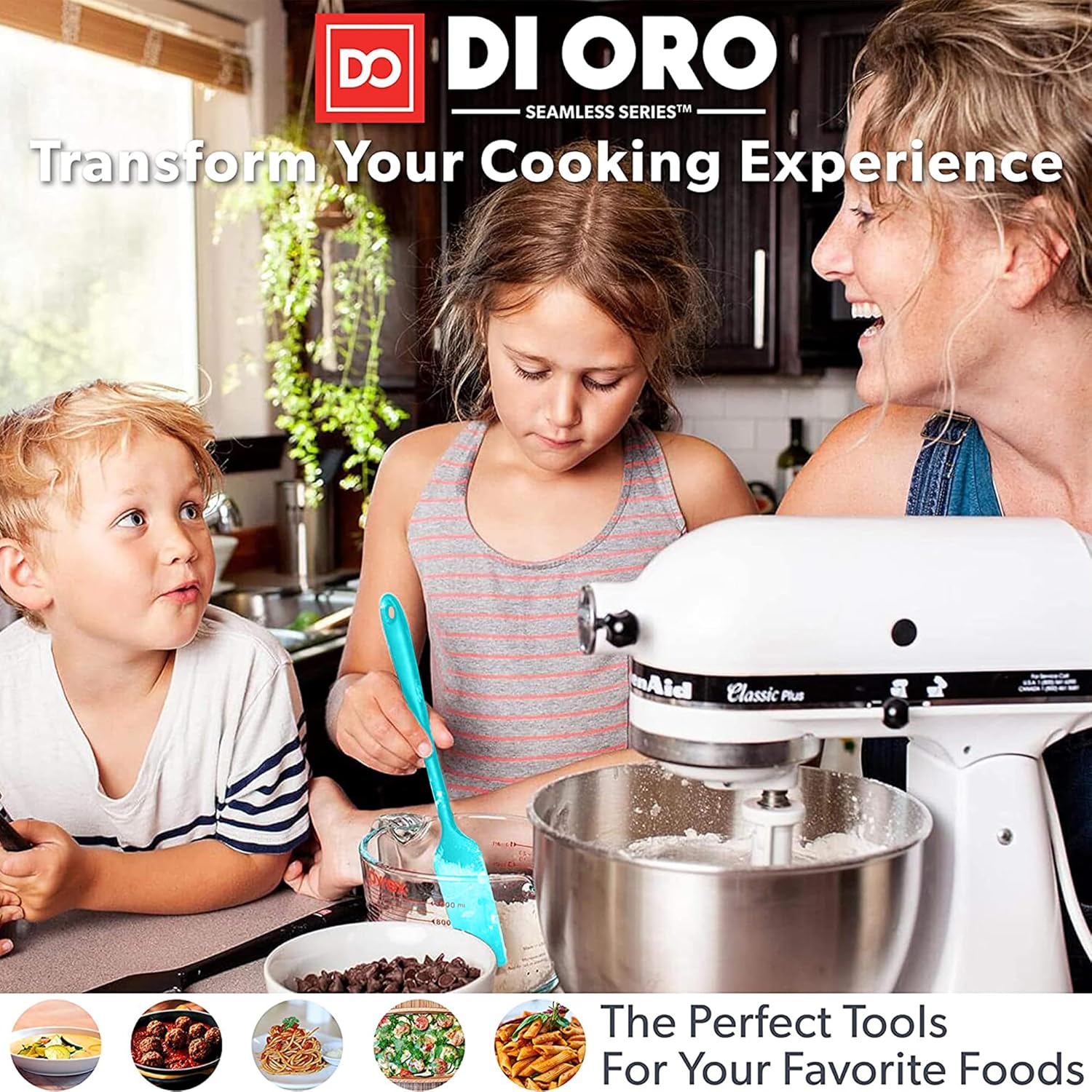 - DESIGNED WITH YOU IN MIND – The DI ORO Seamless Series 5-Piece Silicone Spatula Set includes our Award-Winning Large Spatula, 14” Extra Large Pro Spatula, Mini Spatula, Jar Spatula, and Spoonula. Whether scooping, mixing, serving, or spreading, you will have all the tools you need to perform the tasks essential to mastering your skills in the kitchen.