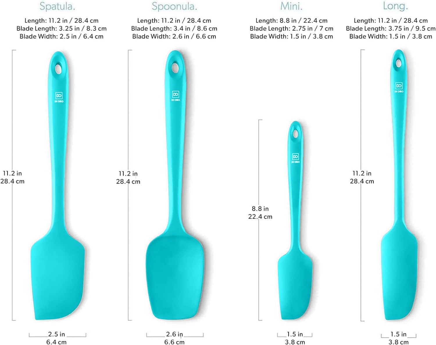 DI ORO Silicone Spatula Set - Rubber Kitchen Spatulas for Baking, Cooking, & Mixing - 600°F Heat-Resistant & BPA Free Silicone Scraper Spatulas for Nonstick Cookware - Dishwasher Safe (4pc, Teal)