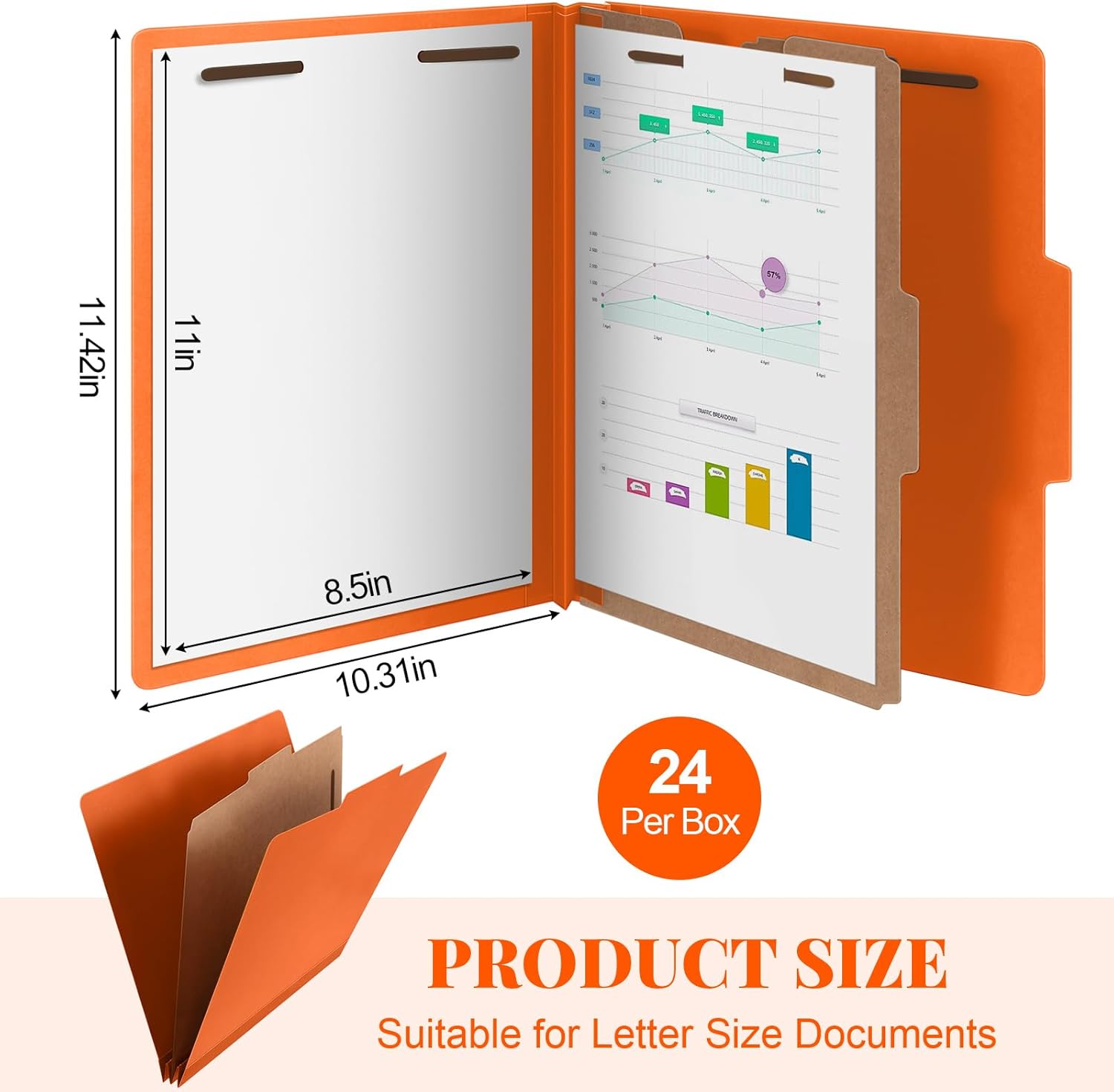 24 Pcs Classification Folders Letter Size, Back to School Supply for Teacher, Student, 1 Divider Pressboard File Folder Bulk with 2 Fasteners, 3.5 Inch Expanding File Organizer (Orange)