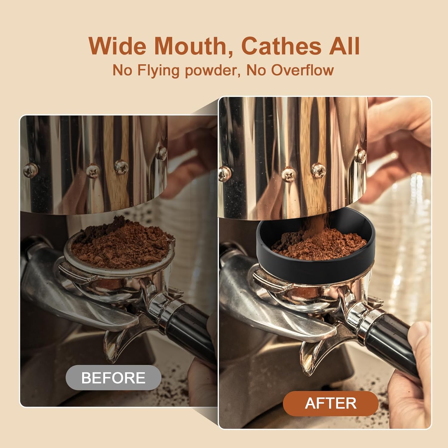 - **Premium Aluminum Construction:** Crafted from high-quality aluminum material, this coffee dosing ring is LONG LASTING and lightweight, providing excellent stability during the tamping process while resisting rust and wear from daily coffee preparation routines.
