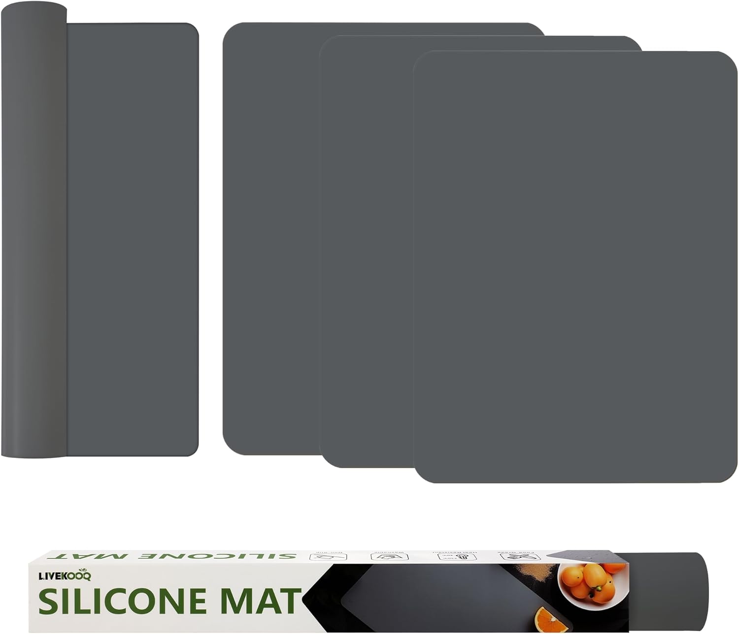 Silicone Mat for Kitchen Counter, Silicone Mat Trimable to Size (Dark Gray, 15.7×11.8inch-4pcs), BPA-Free Silicone Placemat, Heat-Resistant NonSlip Table Mat for Air Fryer, Countertop Protector Mat