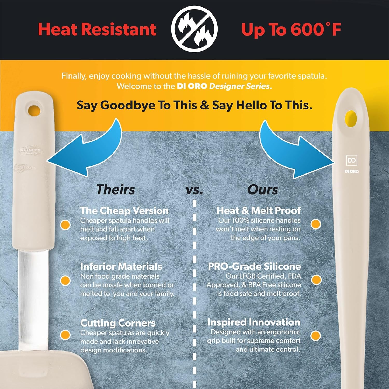 - ONLY THE BEST – By popular demand, we have added a Silicone Ladle to our Award-Winning Seamless Series line of kitchen utensils. The Di Oro Seamless Series Ladle is made with food grade, BPA Free, and LFGB Certified Silicone. Built to withstand the heat, this ergonomically designed tool is heat-resistant up to 600°F, which means you will never melt your favorite kitchen utensil.