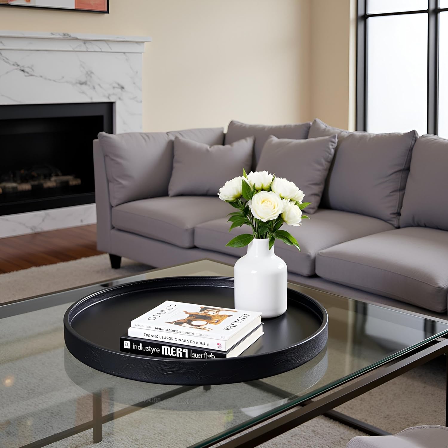 20 * 20 inches high-end Light Luxury Leather Round Oversized Service Tray, Ottoman Tray,Coffee Tray, Food Tray, Family Dinner, Out-of-House Picnic, Party Essential Tray (20 inch Black)