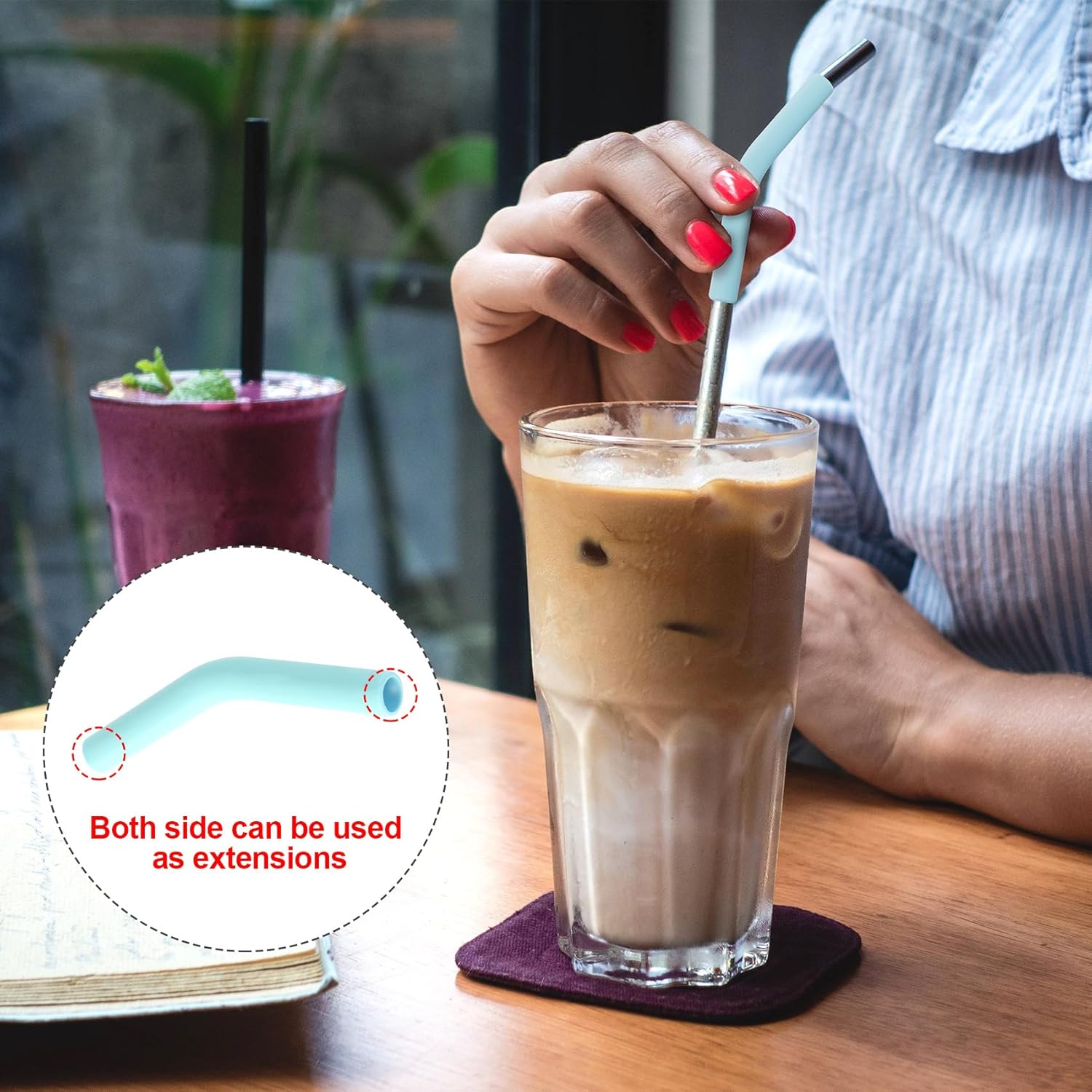 6Pcs Metal Straw Silicone Tips 5/16 IN Wide(8mm Outer Diameter) Food Grade Rubber Straw Covers Light-Blue Flex Elbow Replacement Tip for Stainless Steel Metal Straws