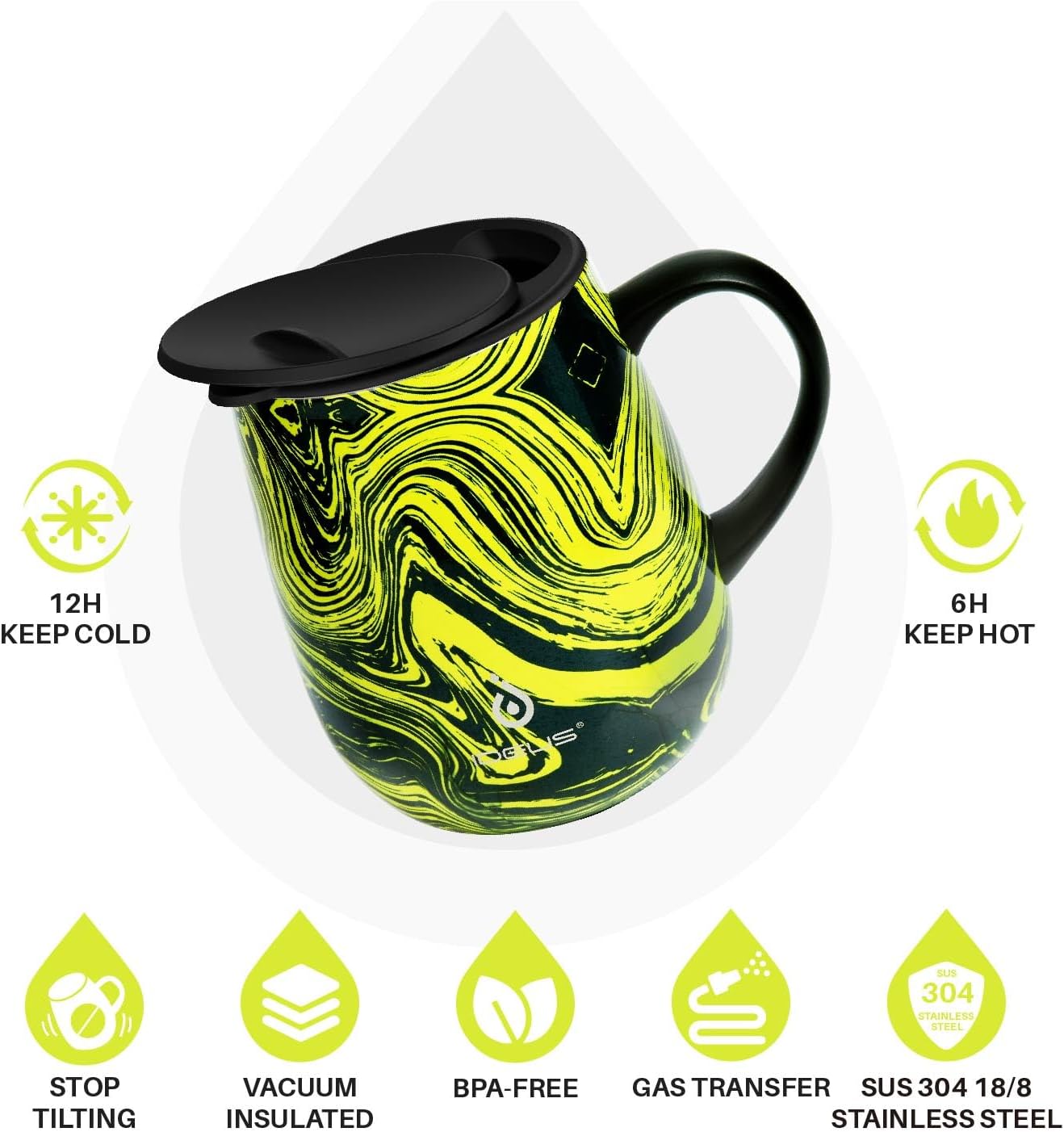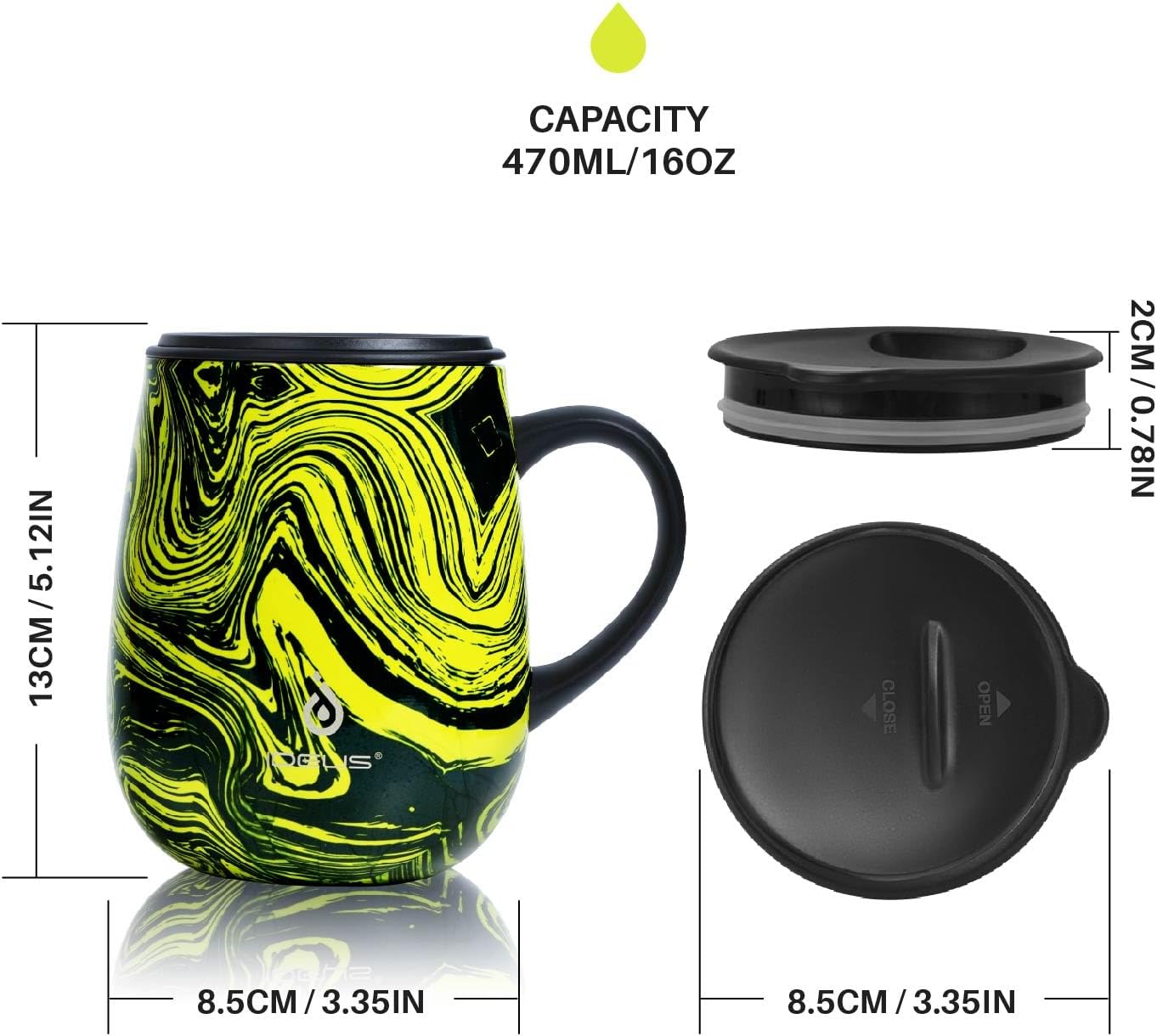 - 【VACUUM INSULATION】- IDEUS 16 oz coffee tumbler is made from 18/8 stainless steel. Advanced double-wall vacuum insulation technology can keep the temperature of beverages for up to 6 hours (hot) & 12 hours (cold).