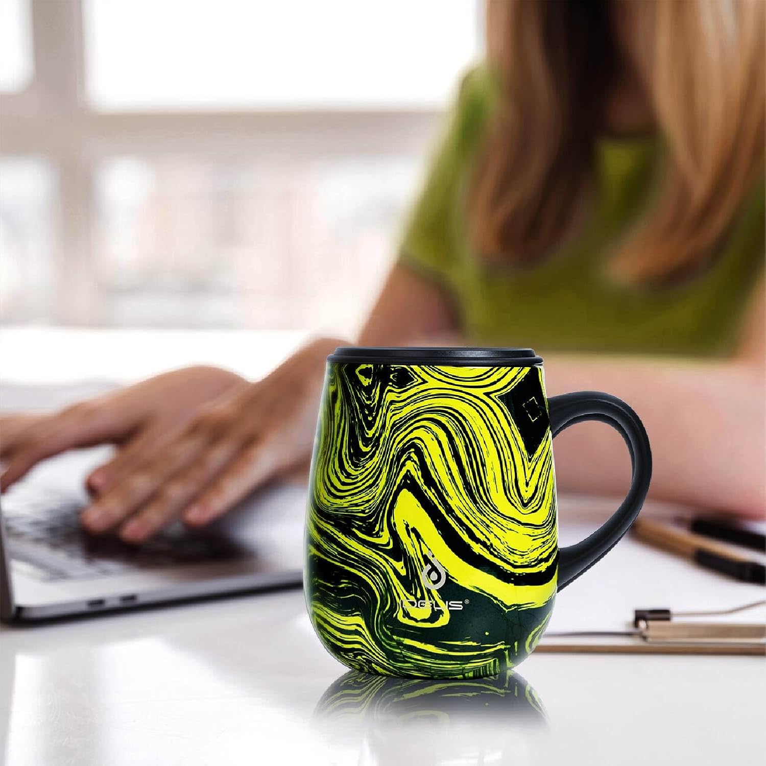 Ideus 16 oz (470 ml) Insulated Coffee Mug with Handle and Lid, Double Wall Stainless Steel Vacuum Thermal Coffee Mug, Travel Coffee Cup Thermal Cup for Home and Office (Yellow Zebra)