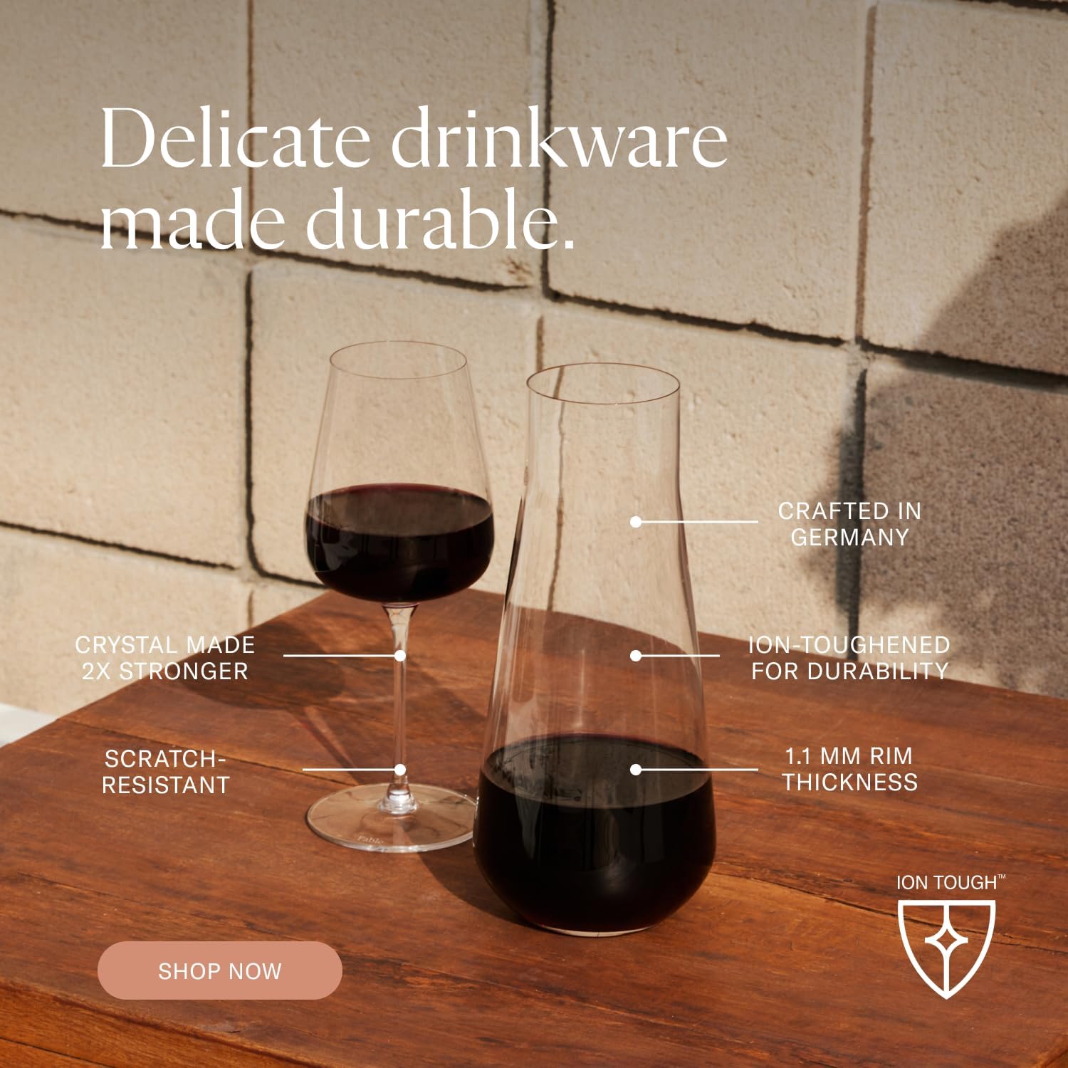 - Shatter-Resistant Crystal Glasses: Crafted in Germany with an ion-toughening technique, our crystal wine glasses are scratch-resistant, lead-safe, and 2 times stronger than untreated crystalware, ensuring lasting quality for everyday use.