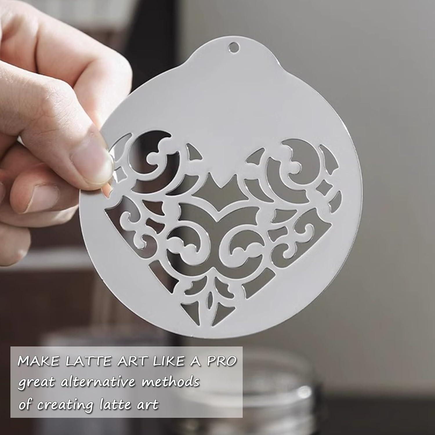 - MAKE LATTE ART LIKE A PRO: Add that professional and artistic looking touch at your beverages and baked goods with metal stencils for latte art. Made with stainless steel material that is durable, easy to use, and perfect for spicing things up with creative art design by sprinkling cinnamon powder, cocoa, or nutmeg over the top of your homemade latte or cappuccino