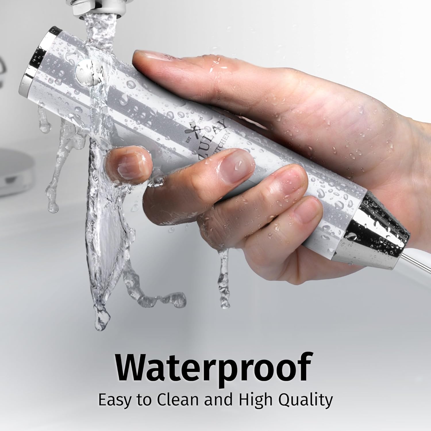 - WATERPROOF FOR EASY CLEANING: Thanks to its IPX6 waterproof rating, this frother wand can handle water exposure without any issues, making cleaning a breeze. Simply rinse the rechargeable frother under running water after use, and it’s ready to go—no complicated disassembly or worrying about water damage!