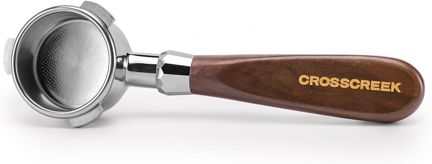 - UNIQUE WALNUT HANDLE. The handle of our bottomless portafilter is carefully crafted to ensure optimal comfort and stability during use. Made of natural walnut, the handle is designed to fit comfortably in your hand, providing a natural grip that minimizes fatigue and strain. The ergonomic design also ensures that the portafilter remains stable during the extracting process, allowing you to maintain precise control and achieve the perfect extraction every time