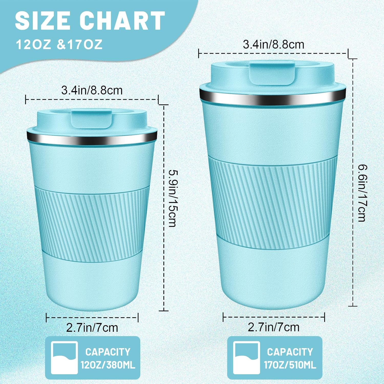 - Ideal Size for Coffee Machine & Car Cupholder Friendly: Coffee tumbler has 2 size-380ml/12oz & 510ml/17oz, and muti-color to choose from, portable size for home use, on-the-go, trip, to work carrying coffee, car cupholder friendly design make coffee mug a ideal choose in travel on the go.