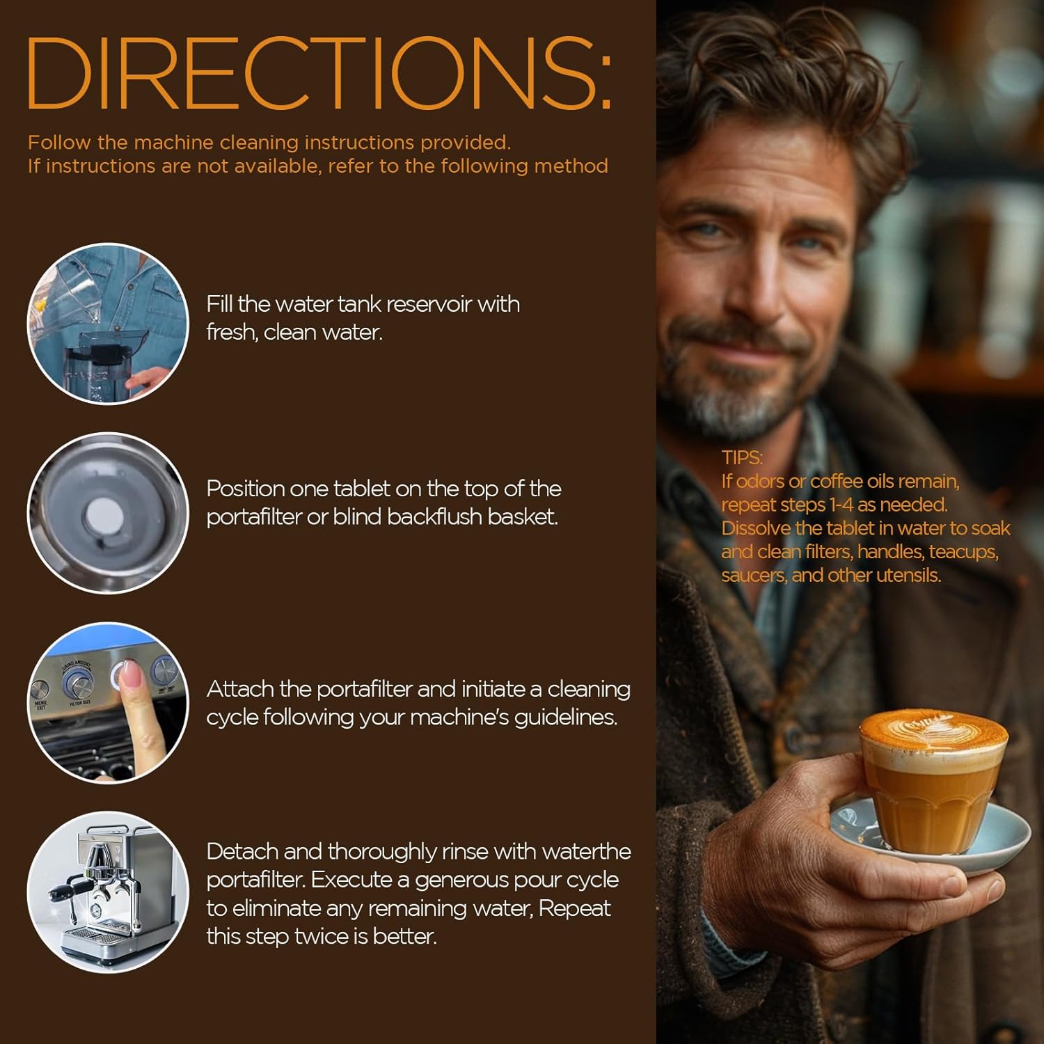 - Easy to Use: Position a tablet on the top of the portafilter or blind backflush basket for hassle-free cleaning.