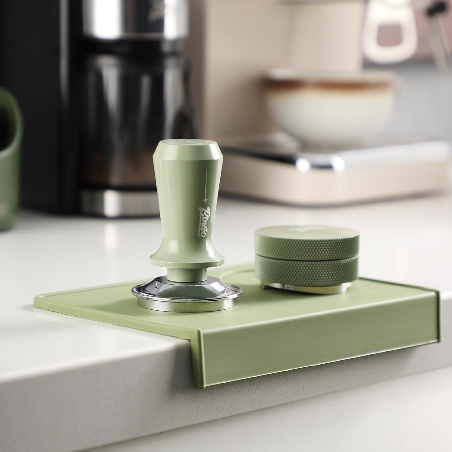 - Enhanced Silicone Protection: Safeguards your countertop from the weight of the tamper and vice versa, with a corner design allowing for edge tamping on tables and counters.