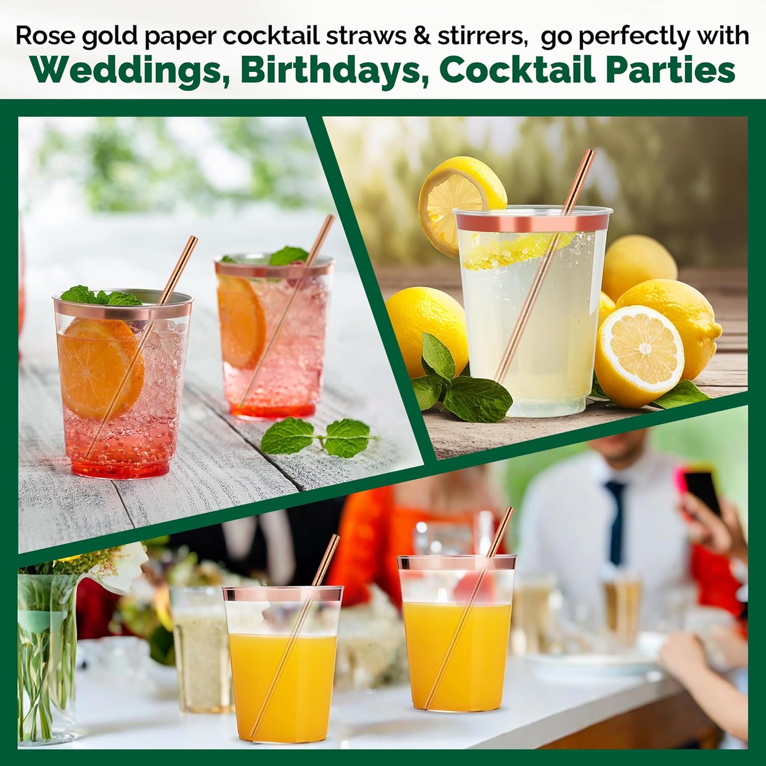 Rose Gold Paper Cocktail Straws, 5.75 inch, 500 counts, Disposable Short Small Drinking Straws for 8oz 10oz Cups