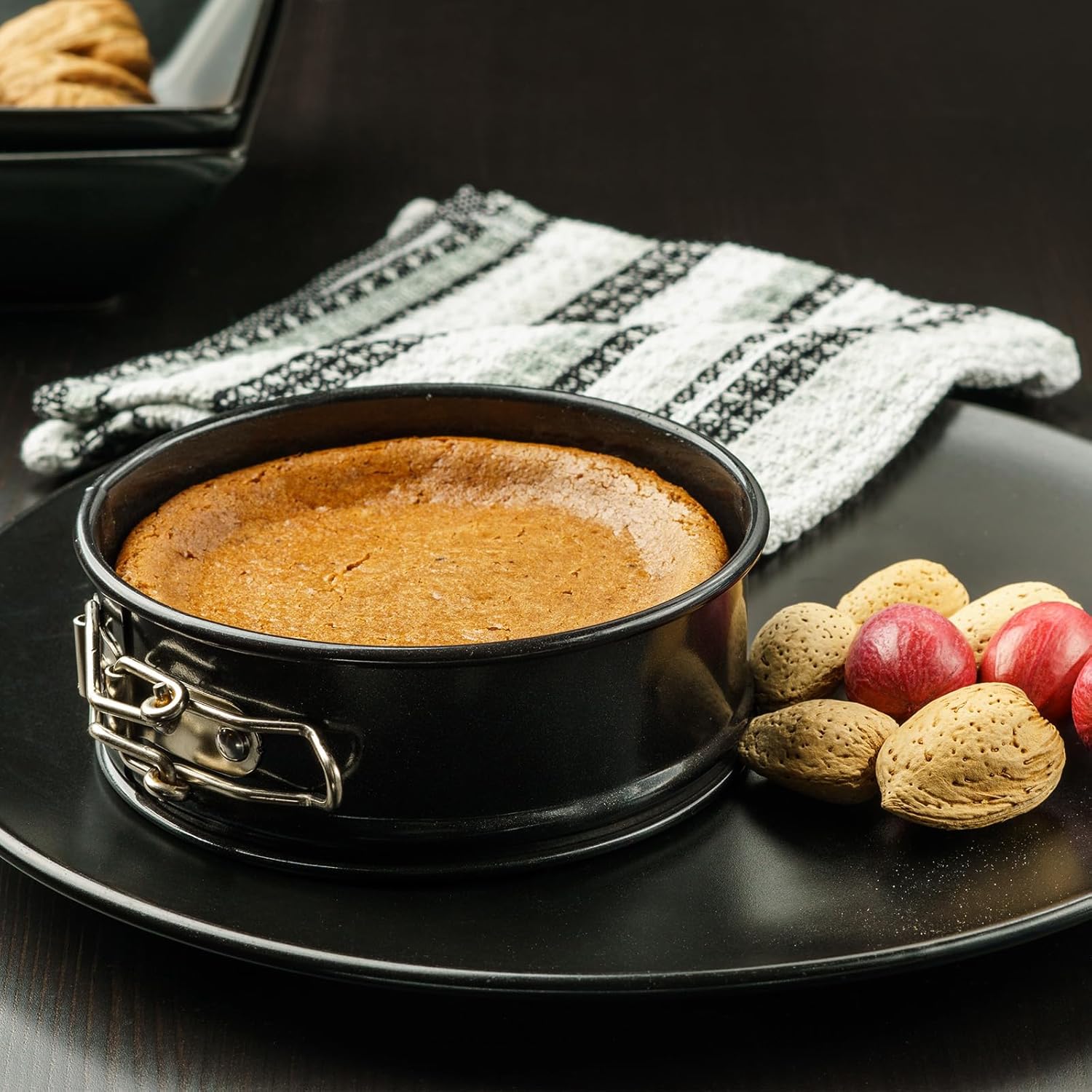 - Material: This nonstick cake pan is made from strengthened carbon steel material with a nonstick coating in a sleek black color. The rust-resistant and durable construction ensures long-lasting performance, while the nonstick surface allows for easy cake release without any residue or sticking.