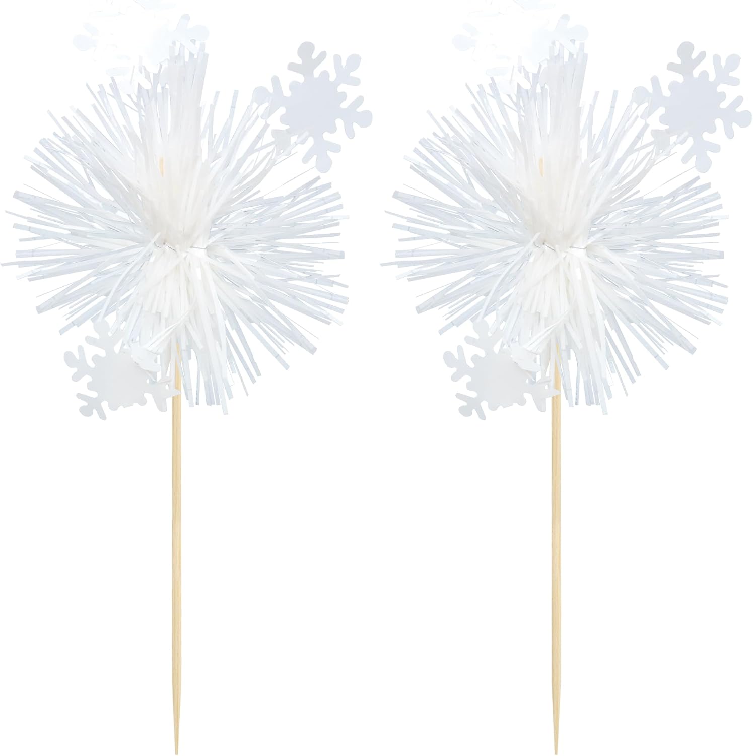 Gyufise 20Pcs Foil Firework Cupcake Toppers Sparkle Tinsel Cake Toppers Tinsel Drink Cake Decoration Cocktail Picks for Birthday Wedding Graduation Party Supplies White