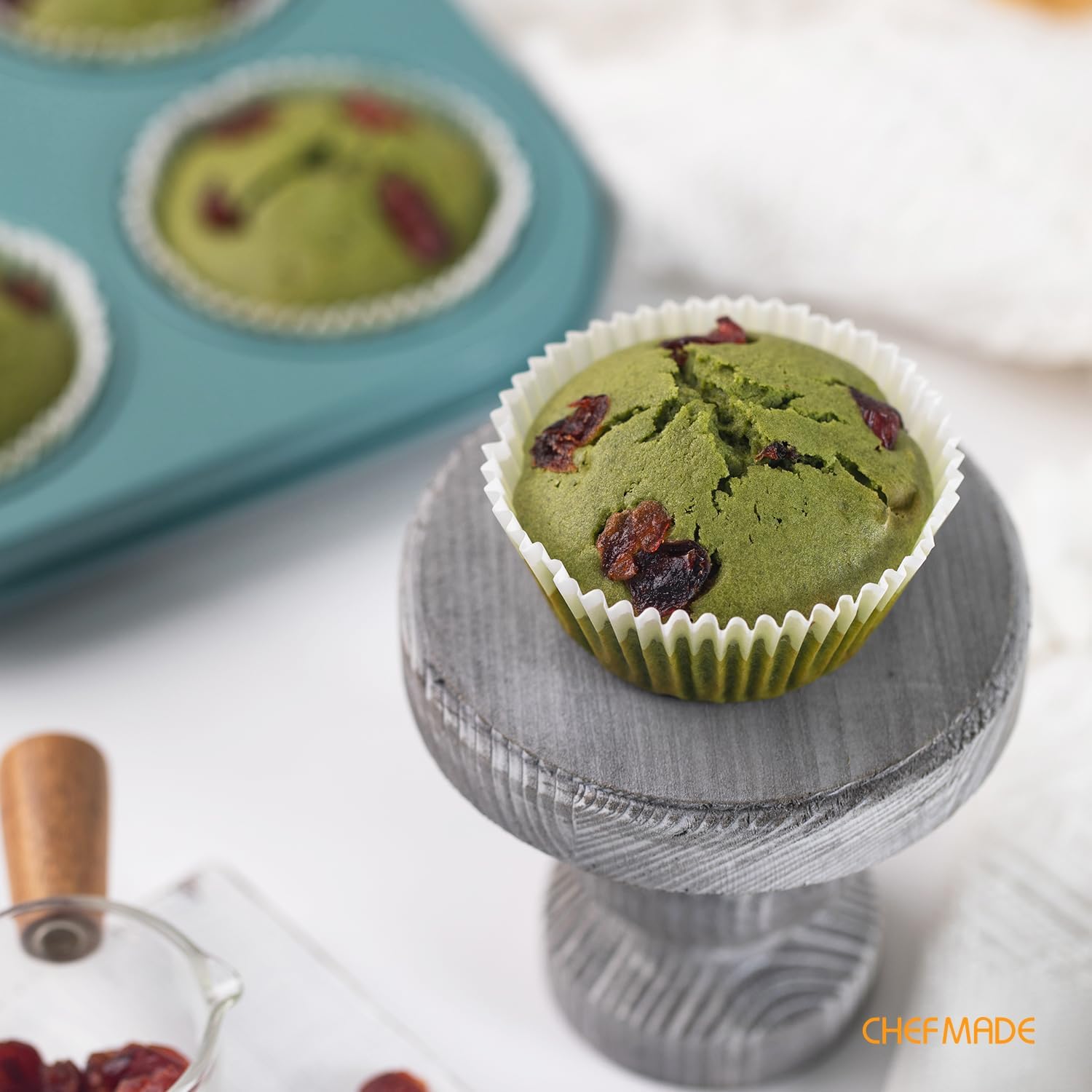 CHEFMADE Muffin Pan, 6-Cavity Non-Stick Cupcake Baking Pan Heavy Duty Carbon Steel Pan Muffin Tins Standard Baking Mold for Cakes(Green)