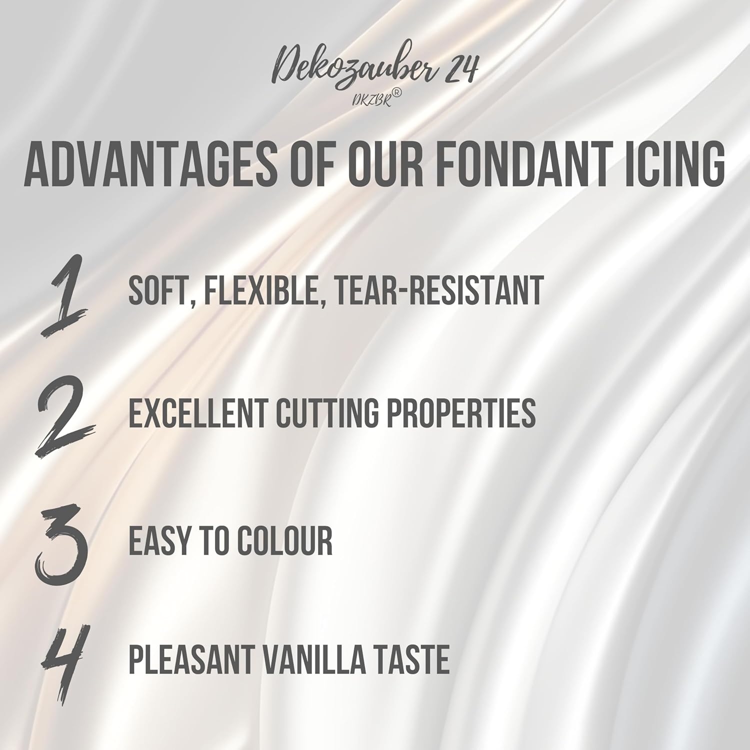 - SMOOTH TEXTURE: The fondant is soft and pliable, allowing for easy shaping, molding, and sculpting to create intricate designs.