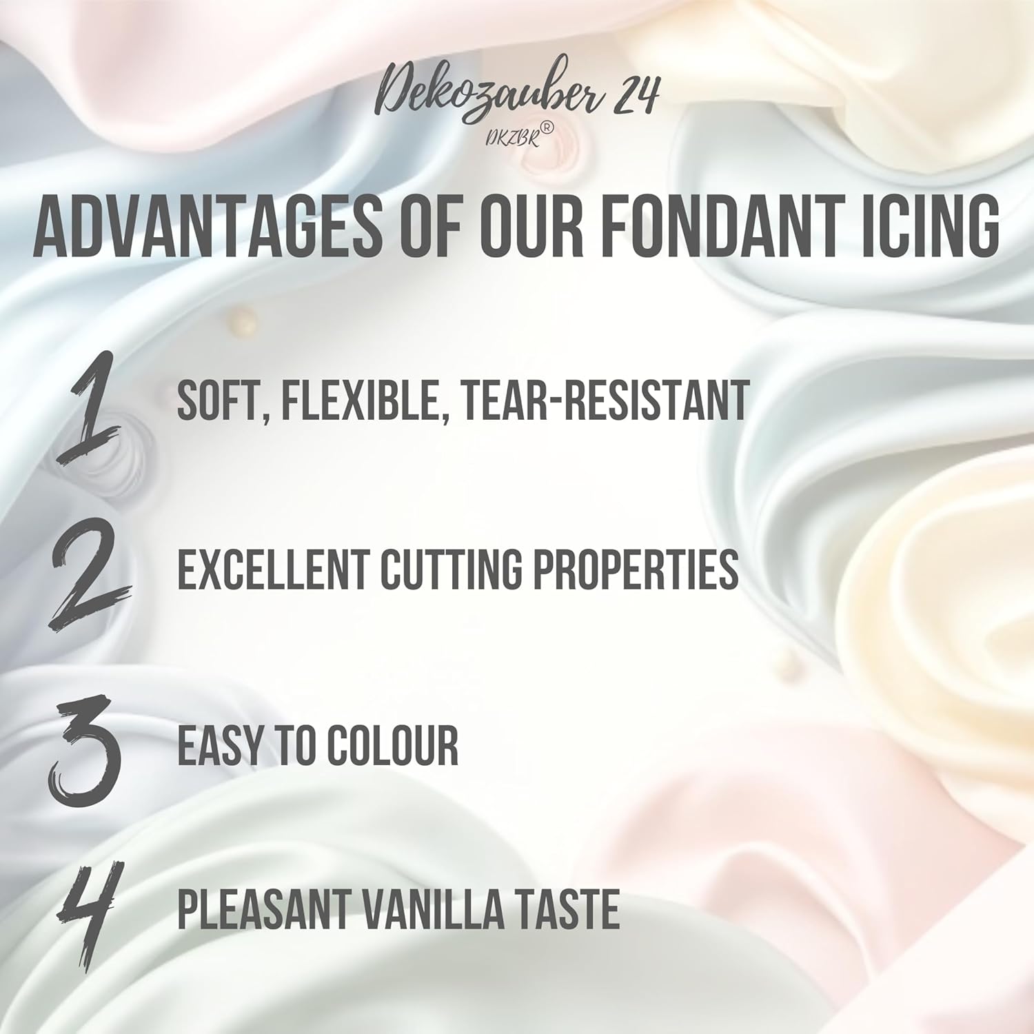 - SMOOTH TEXTURE: The fondant is soft and pliable, allowing for easy shaping, molding, and sculpting to create intricate designs.