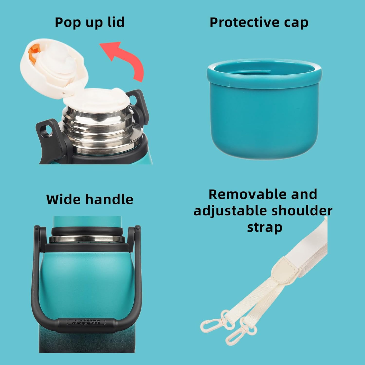 - BPA-Free Water Bottle with Carry Handle and Shoulder Strap: Has a silicone spout and a shoulder strap, all can removable for easy cleaning, comfortable handle makes it easy to carry, also making it an ideal choice for outdoor activities or everyday use