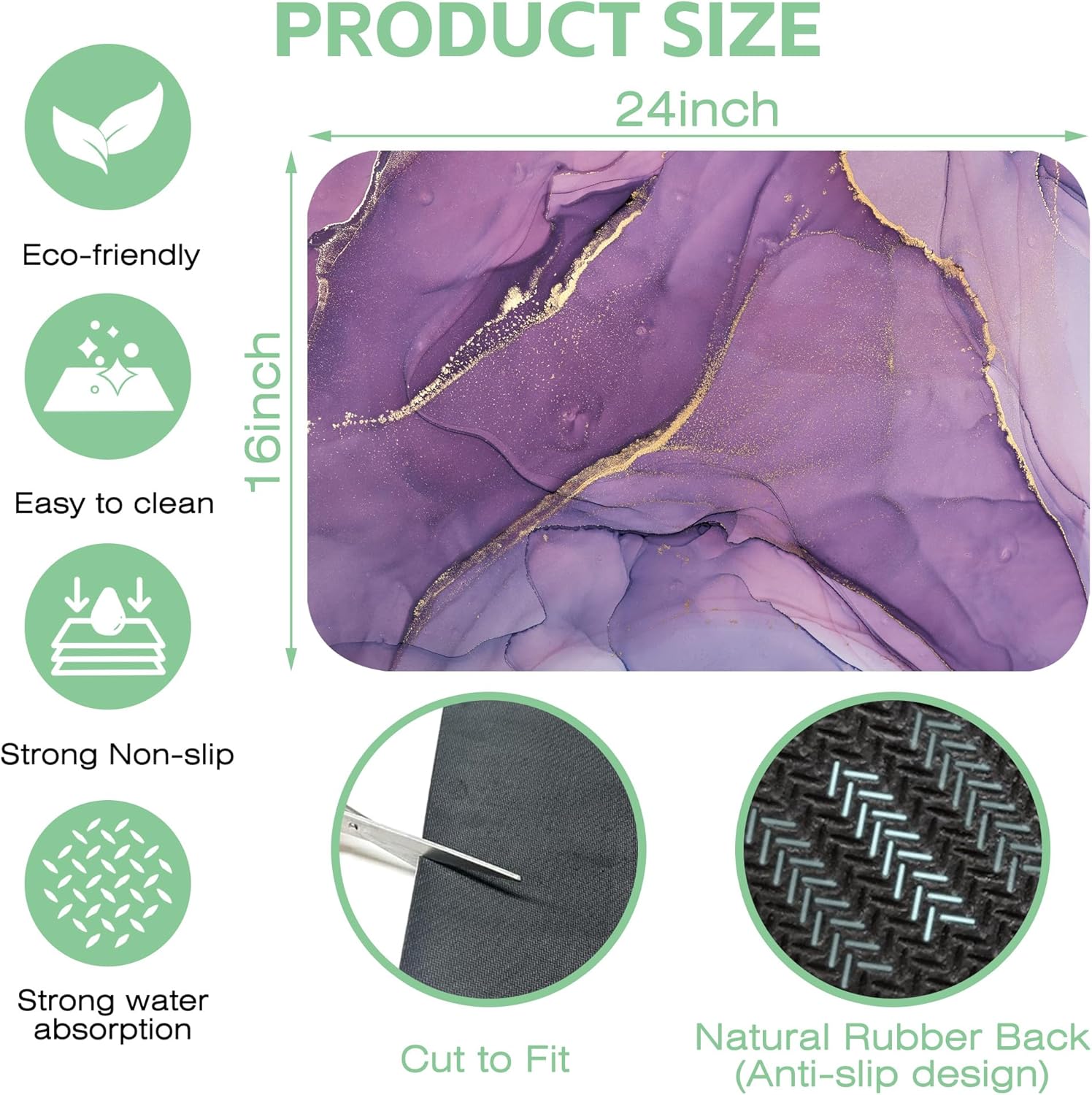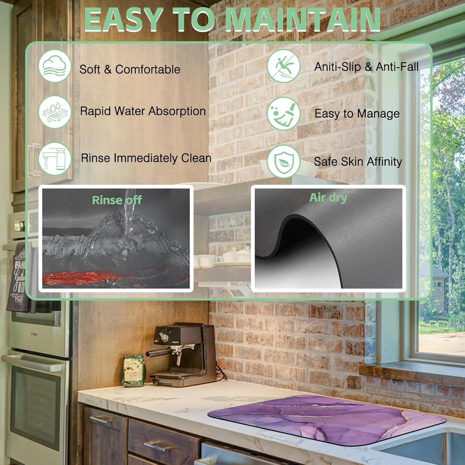 - 【Hide Stains & Easy to Clean】Our dish drying mat, the surface material porosity is up to 85%, which can quickly absorb stains. The dish drying mat can be washed by hand or machine to remove stains, it will not fade after repeated washing, and can be reused many times, due to the high-definition printed suede with excellent color locking effect, please do not use bleach to clean the mat.