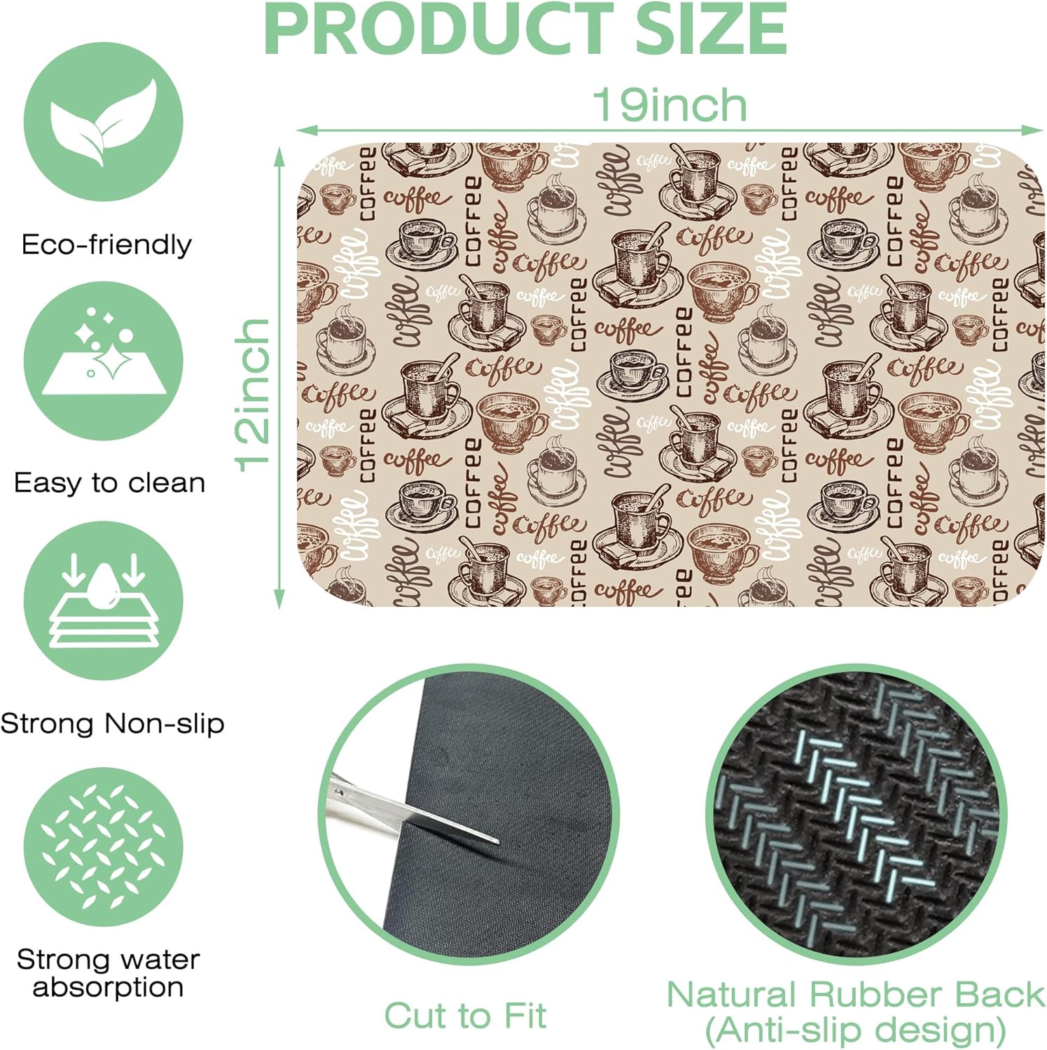 - 【Wide Application】It is not just a coffee bar mat, but also a fast drying kitchen drying mat, suitable for kitchen countertops, coffee bars, dish drain racks, perfect for air drying dishes, glasses, silverware, pots, pans. It can also be used as a pet feeding mat, door mat, bar mat and bathroom drying mat.