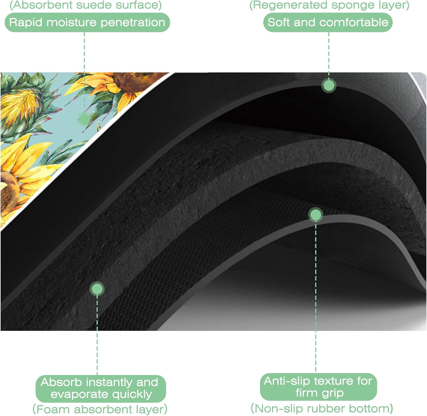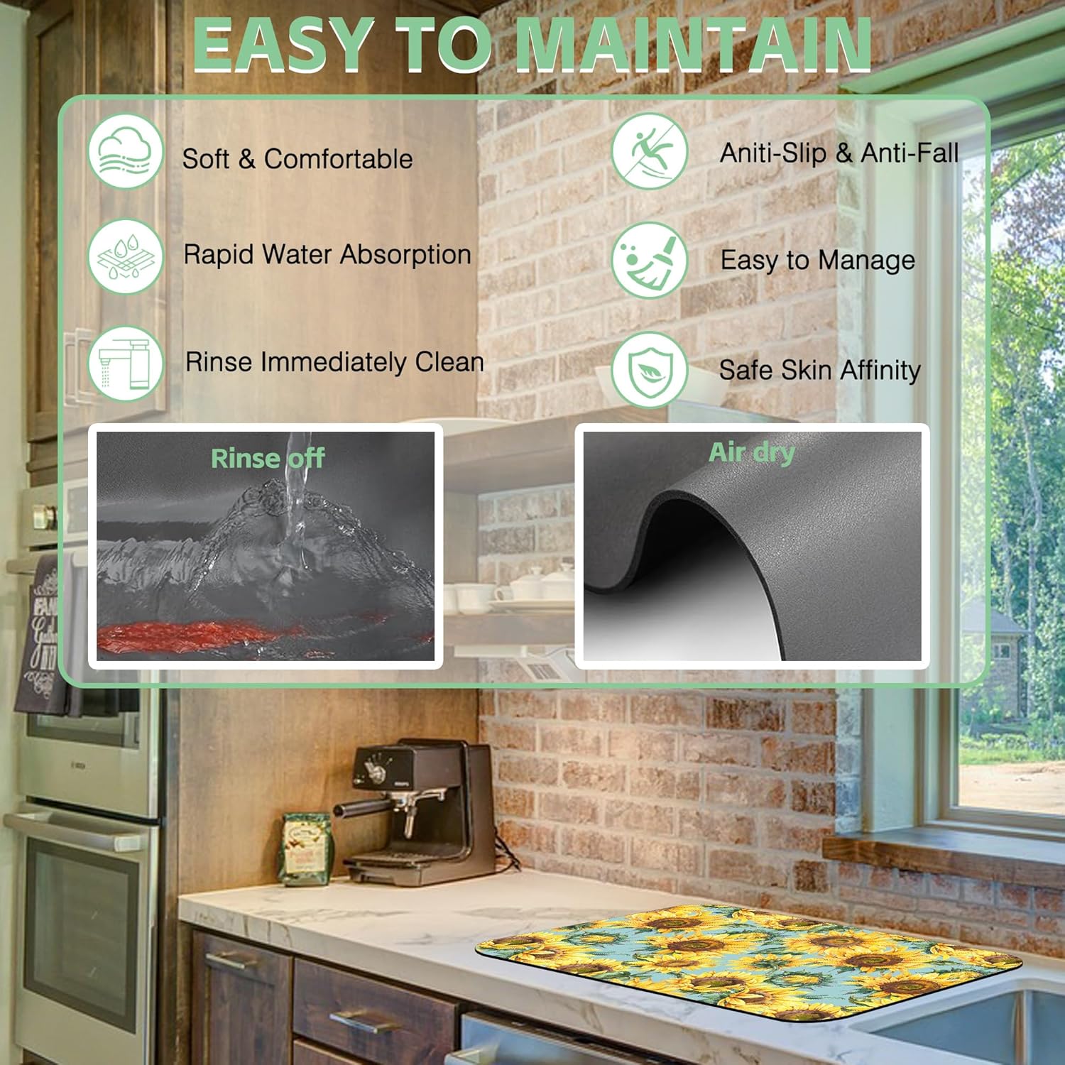 Dish Drying Mat Watercolor Rustic Sunflower Dish Drying Pad,16"X24" Bsorbent Coffee Mat for Sink Dishes or Under Rack Kitchen Counter Accessories Absorbent Hide Stain Rubber Backed Drying Mat