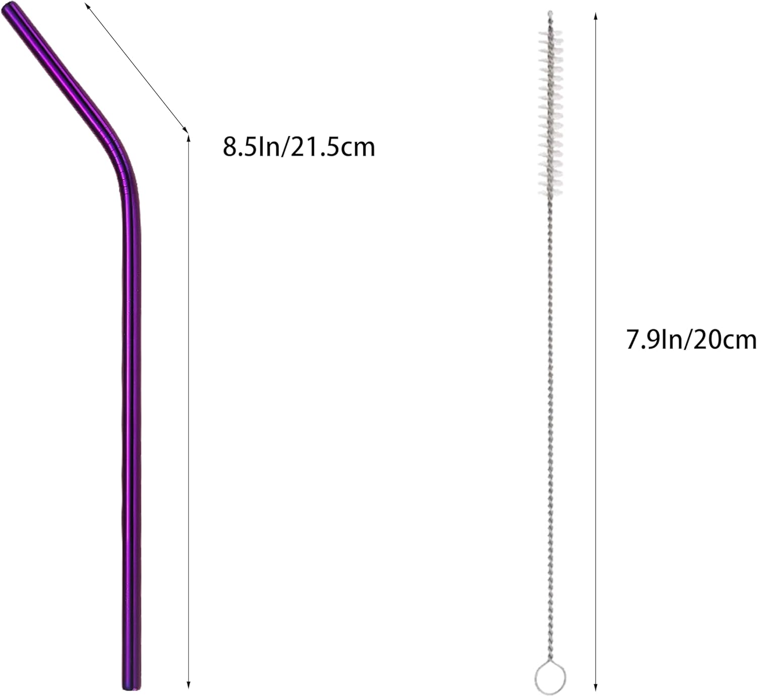 - The Length of Straws is 8.5Inch/21.5cm, The Diameter of Straws is 0.24 Inch/0.6cm, The Length of Scrub Brushes is 7.9Inch/20cm. We Have Different Colors For You To Choose, Various Bright Colors Will Bring You A Pleasant Using Feeling.