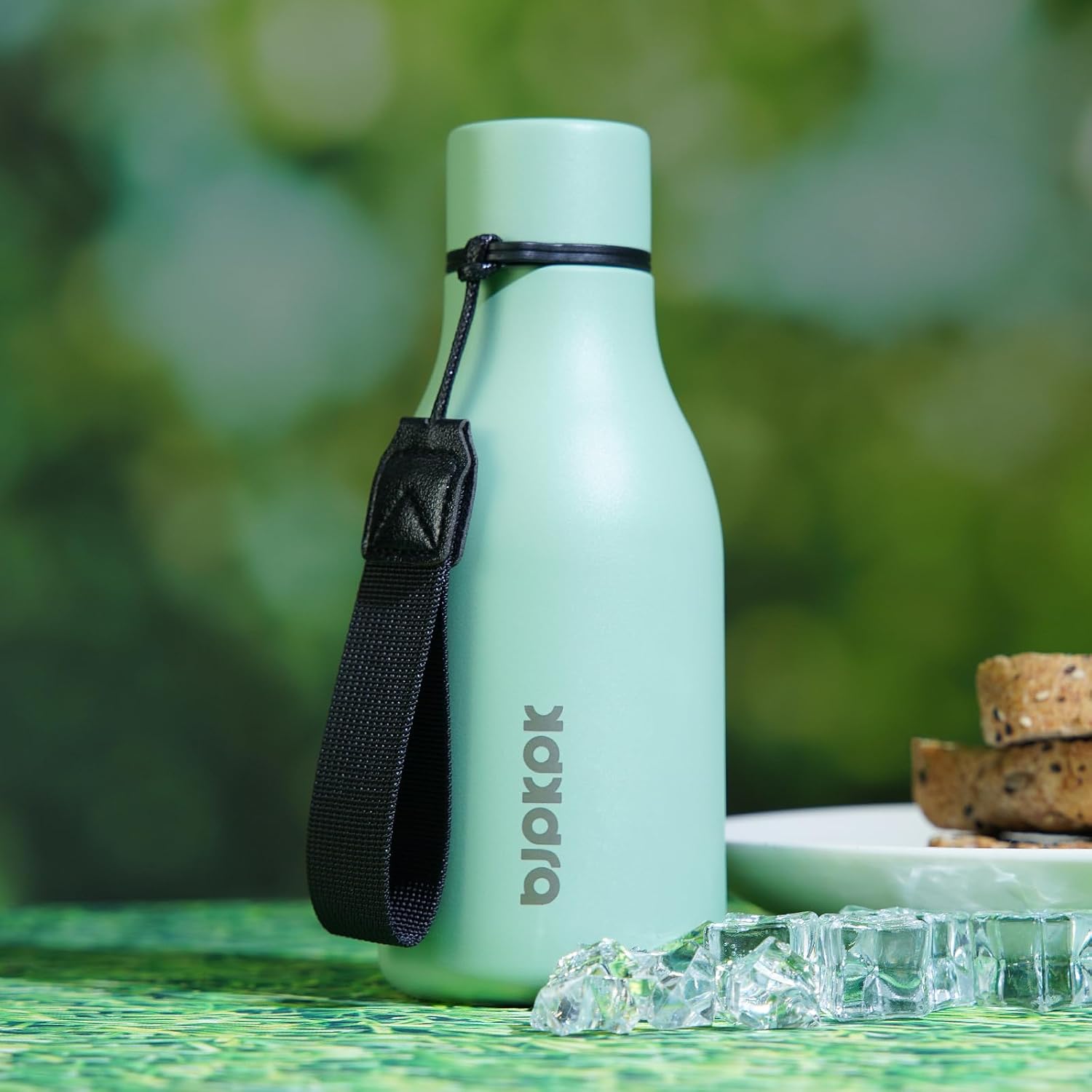 BJPKPK Insulated Water Bottles, 12oz Stainless Steel Metal Water Bottle with Strap, BPA Free Leak Proof Thermos, Mugs, Flasks, Reusable Water Bottle for Sports & Travel, Mist Grey