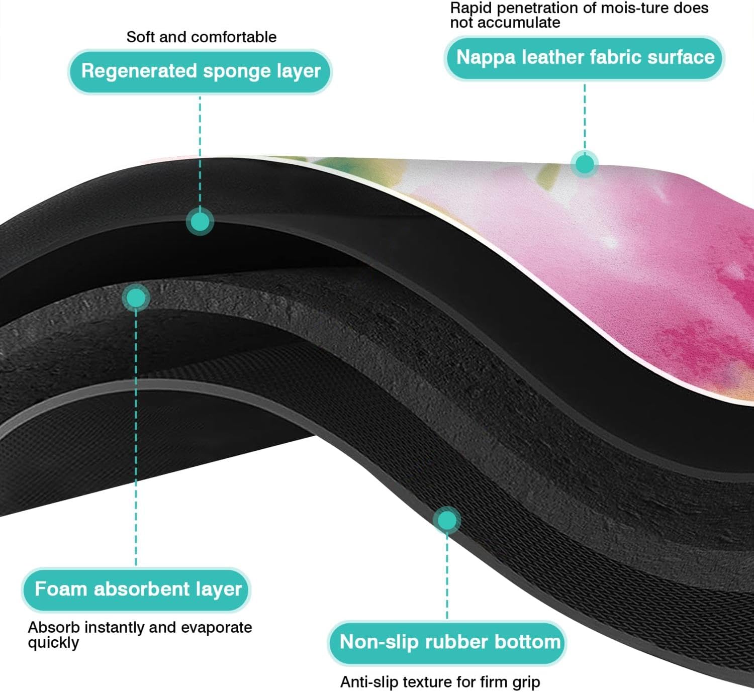 - RUBBER BACKING: The natural rubber bottom of the dish drying mat pad has a good anti-slip effect. Put the dish on the rug and the anti-slip bottom will be absorbed on the table to prevent it from moving. The waterproof bottom can prevent spilled liquid from damaging the tabletop and keep the kitchen countertop clean for a long time.