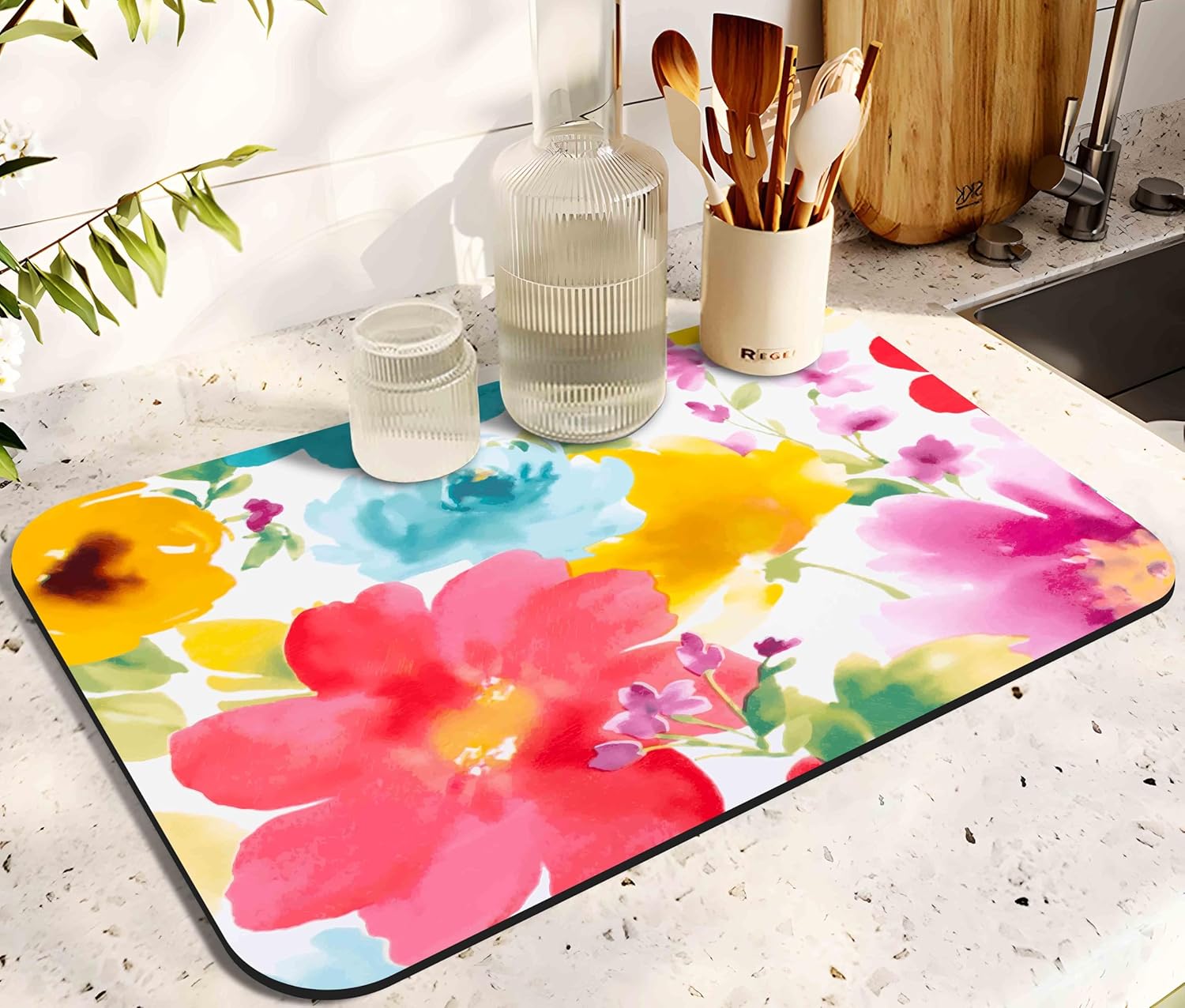- WIDE USE: It’s more than a drying mat. This super absorbent and quick dry mat can be widely used as dish drying mat for dishes and cups in kitchen, bar and bathroom.the drying mat can be used for any small home household appliances indoors.