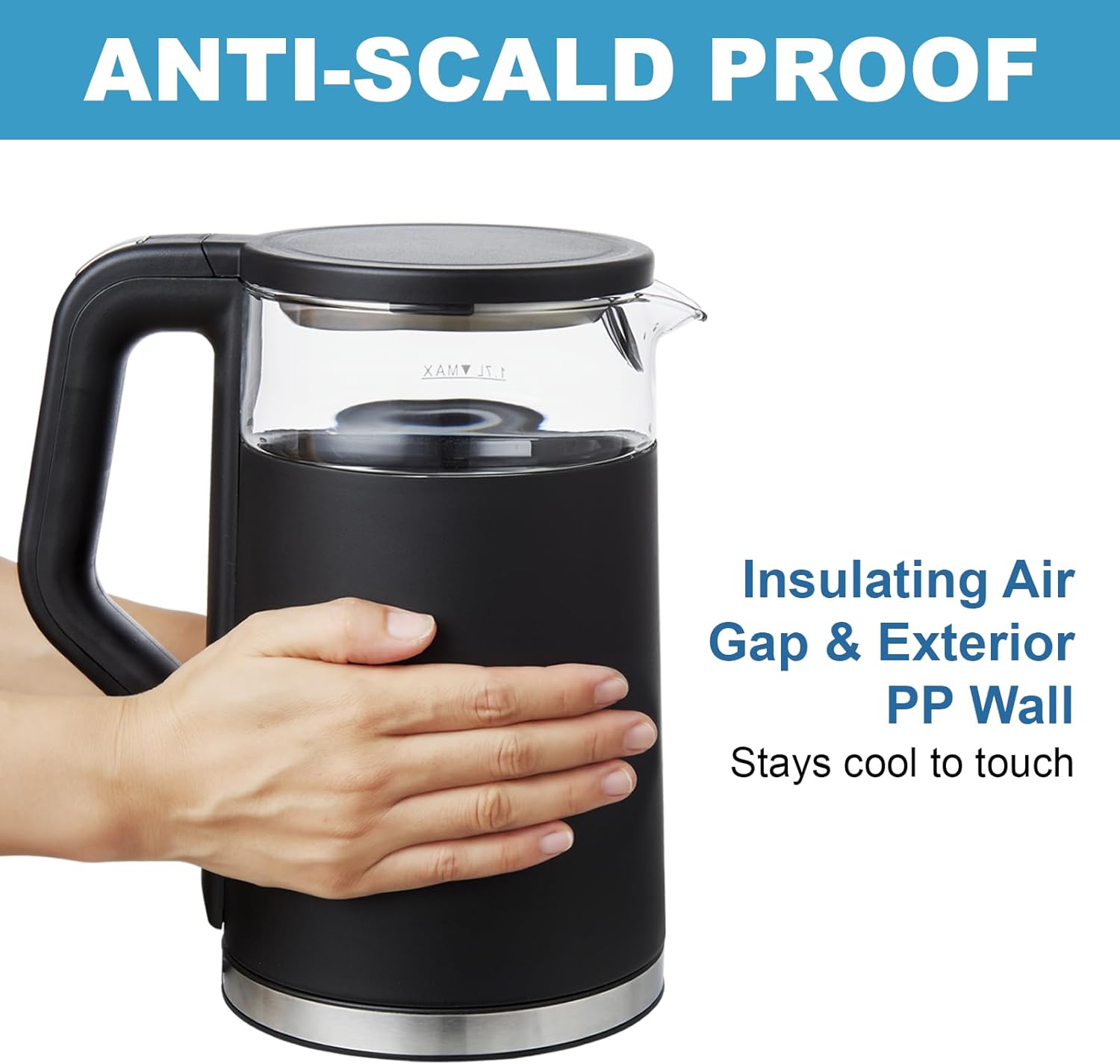 - 【Elegant and Durable Glass Design】Crafted from high-quality glass, this electric kettle combines style and functionality. The transparent body allows you to monitor the boiling process and check water levels easily.