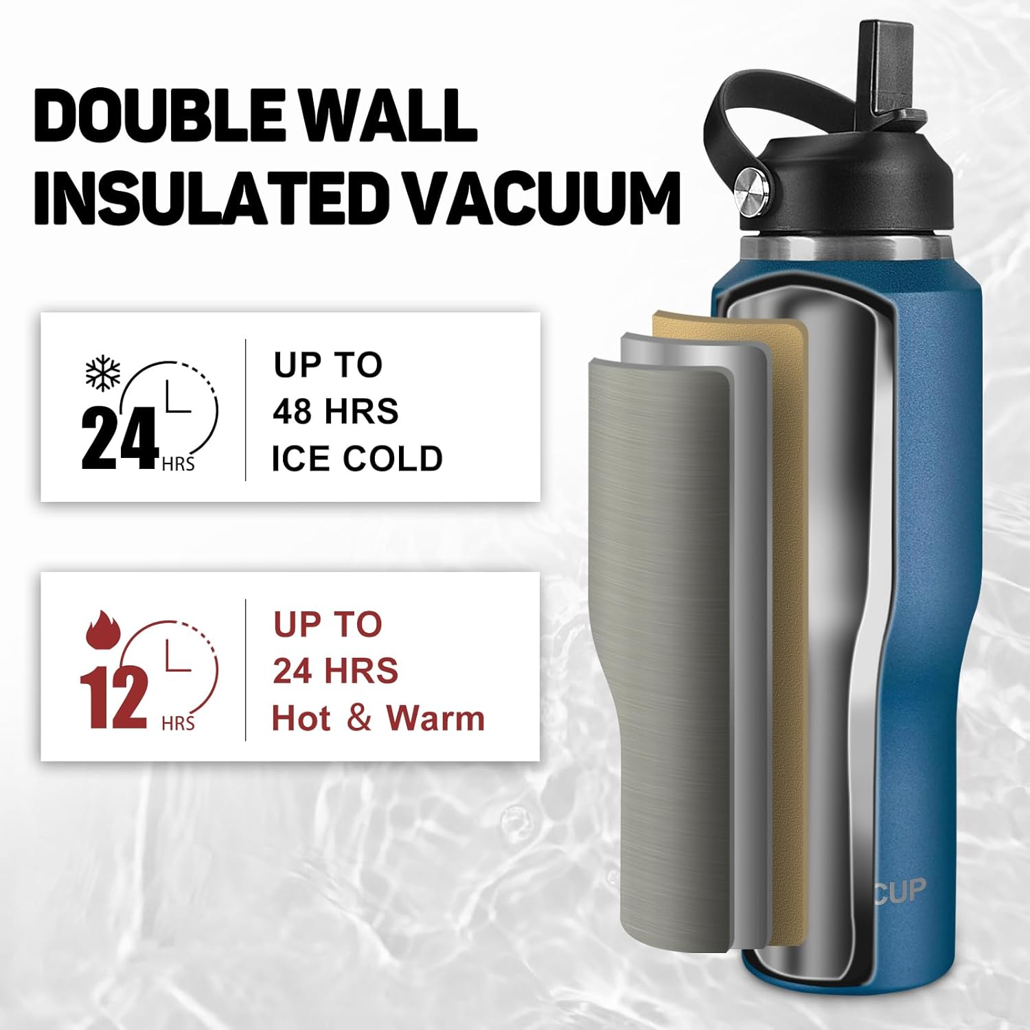 - 【VACUUM INSULATED STAINLESS STEEL】The unique double-walled vacuum insulation of the metal water bottle keeps the beverage hot for 12 hours and ice-cold for 24 hours. Crafted with 100% non-toxic BPA-free plastics & durable food-grade 18/8 stainless steel, Metal water bottle can keep taste of the beverage itself which avoid flavor transfer.