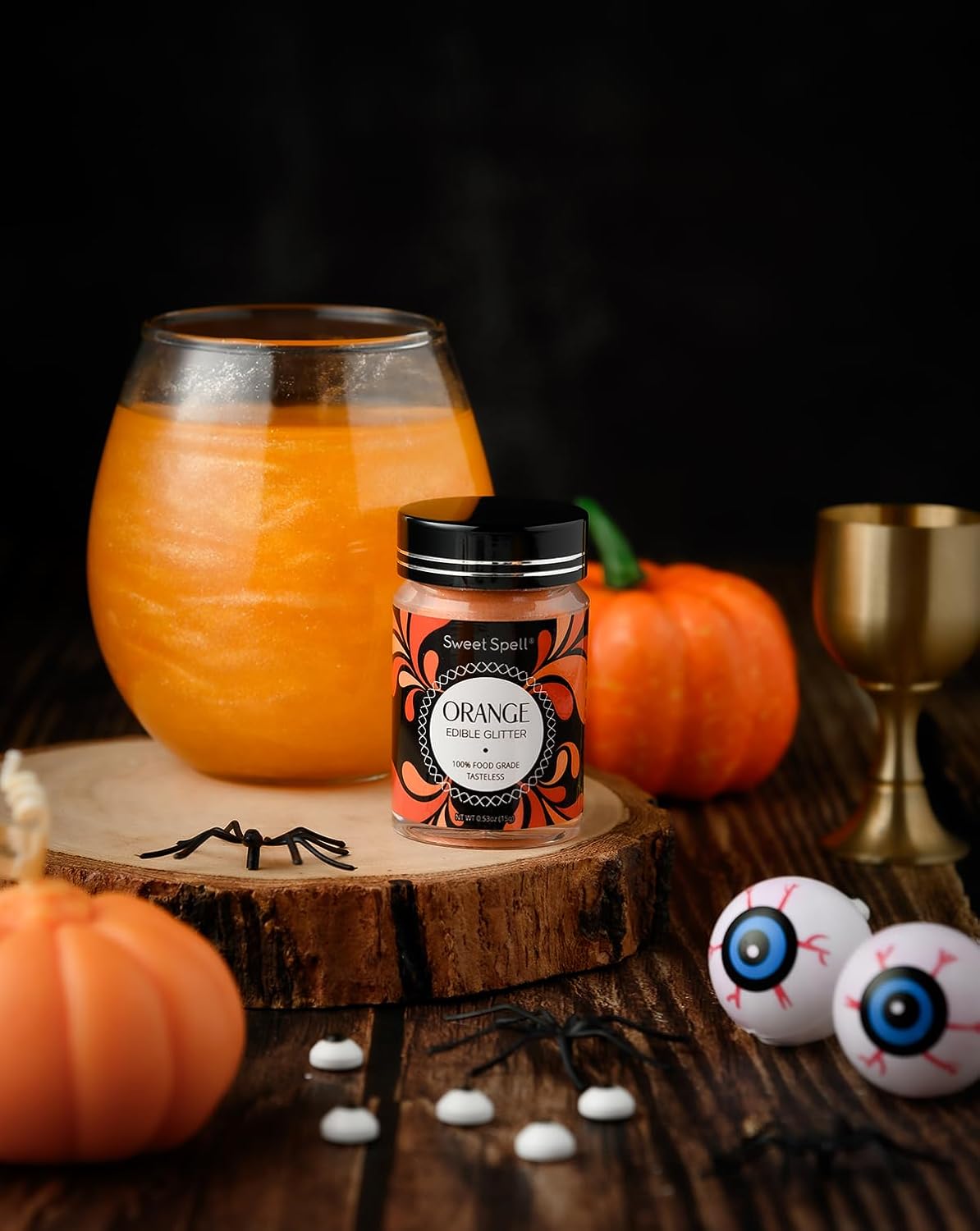 Sweet Spell Edible Glitter (15g) - Shimmer Sparkles for Drinks, Cakes, Cocktails - 100% Edible & Food Grade Glitter, Vegan, Gluten-Free (Orange)
