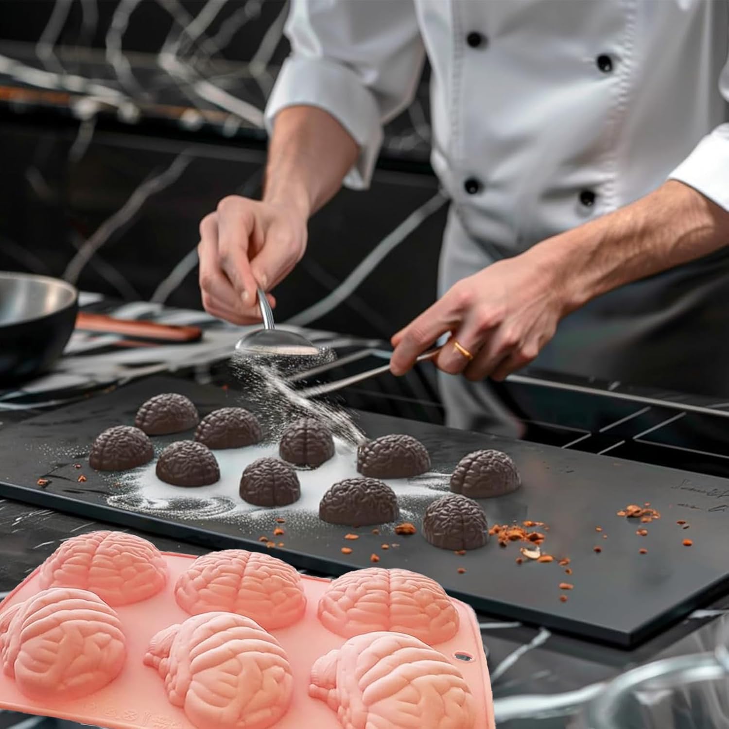 Halloween Molds Silicone for Chocolate 2 Pack, 3D Halloween Chocolate Candy Brain Mold for Cake Cupcake Decorating 12 Cavity