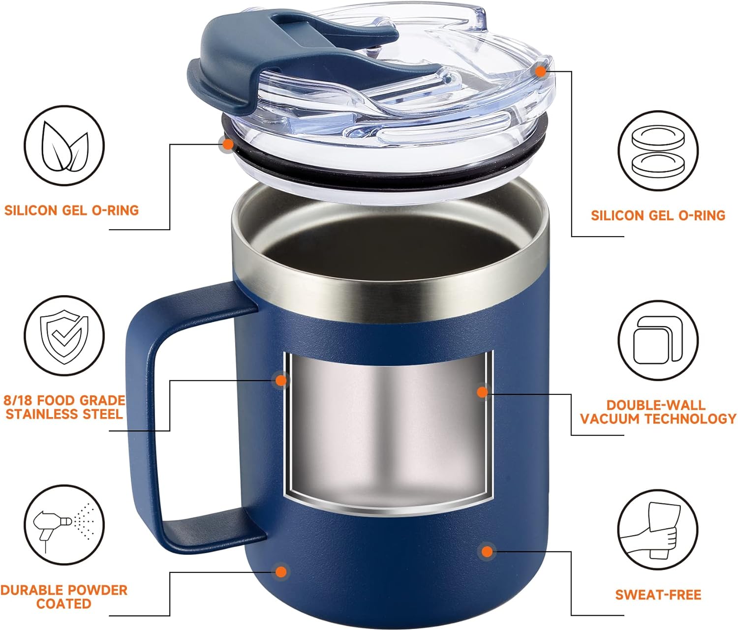 - Coffee Mug Cup with Lid: The transparent plastic lid with a rubber gasket, which is well tightness, it is easily swiped to open while keeping away from splashing