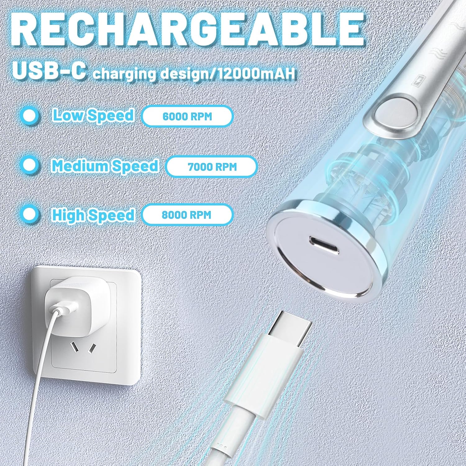 - 【Speeds You Can Choose】: Our electric milk frother mixer has 3 selectable speeds: 1st gear(6000 RPM), 2st gear(7000 RPM) and 3st gear(8000 RPM), you can choose different rotation speed according to your ingredients. In any gears, just press ON/OFF switch button for 2-3s to turn off the frother. The higher speed you choose, the less time you will spend, and the more exquisite foam you will create.