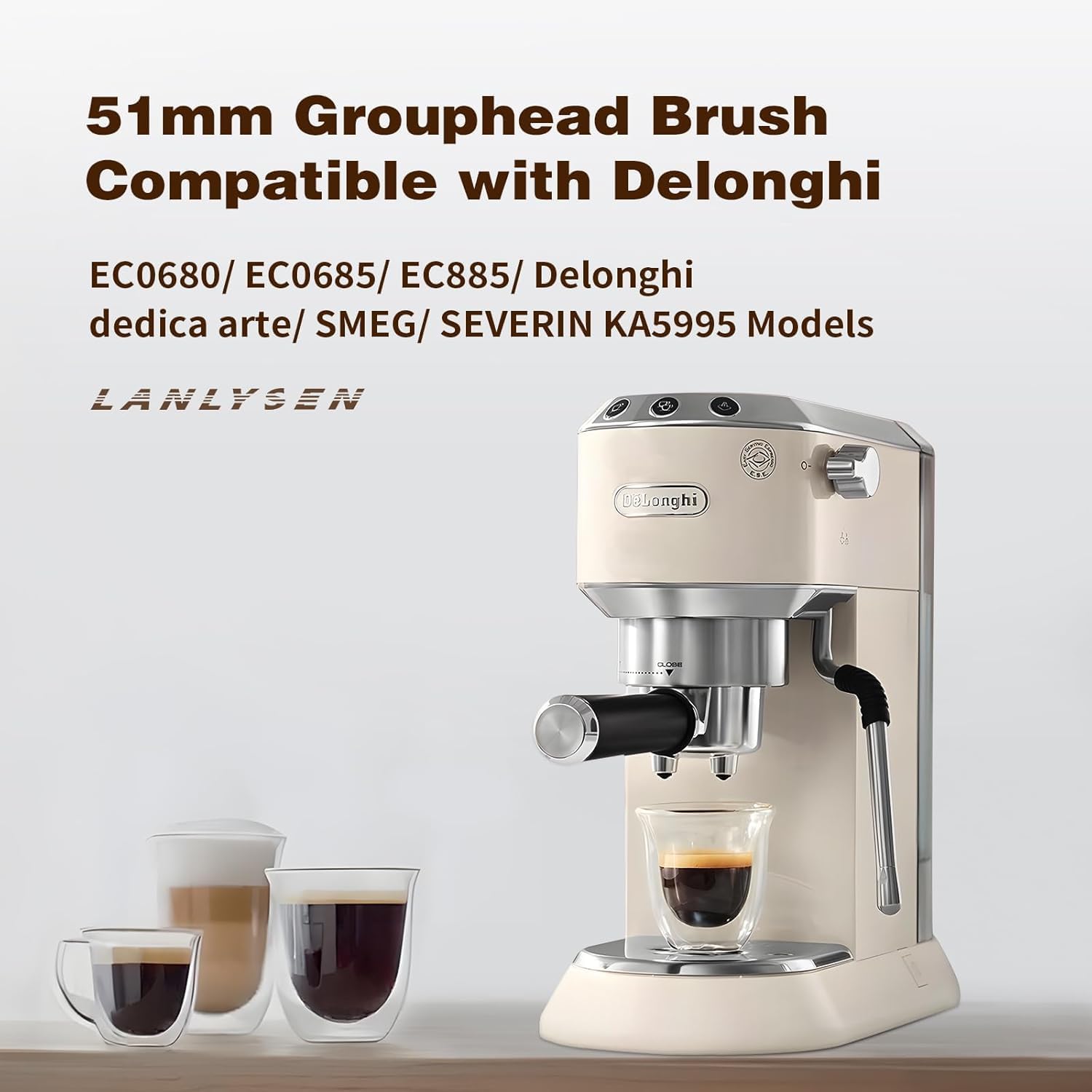 - Compatible with multiple models : LANLYSEN 51 mm electric cleaning brush, only suitable for Delonghi EC0680,EC0685,EC885,Delonghi dedica arte,SMEG,ECF01,SEVERIN KA5995;(Note: Not compatible with CASABREWS machine,Not compatible with 2 Ear machine)Regular use of our cleaning brush helps extend the life of your coffee maker by preventing build-up of coffee oils and residues, ensuring your machine functions optimally and your coffee tastes great.