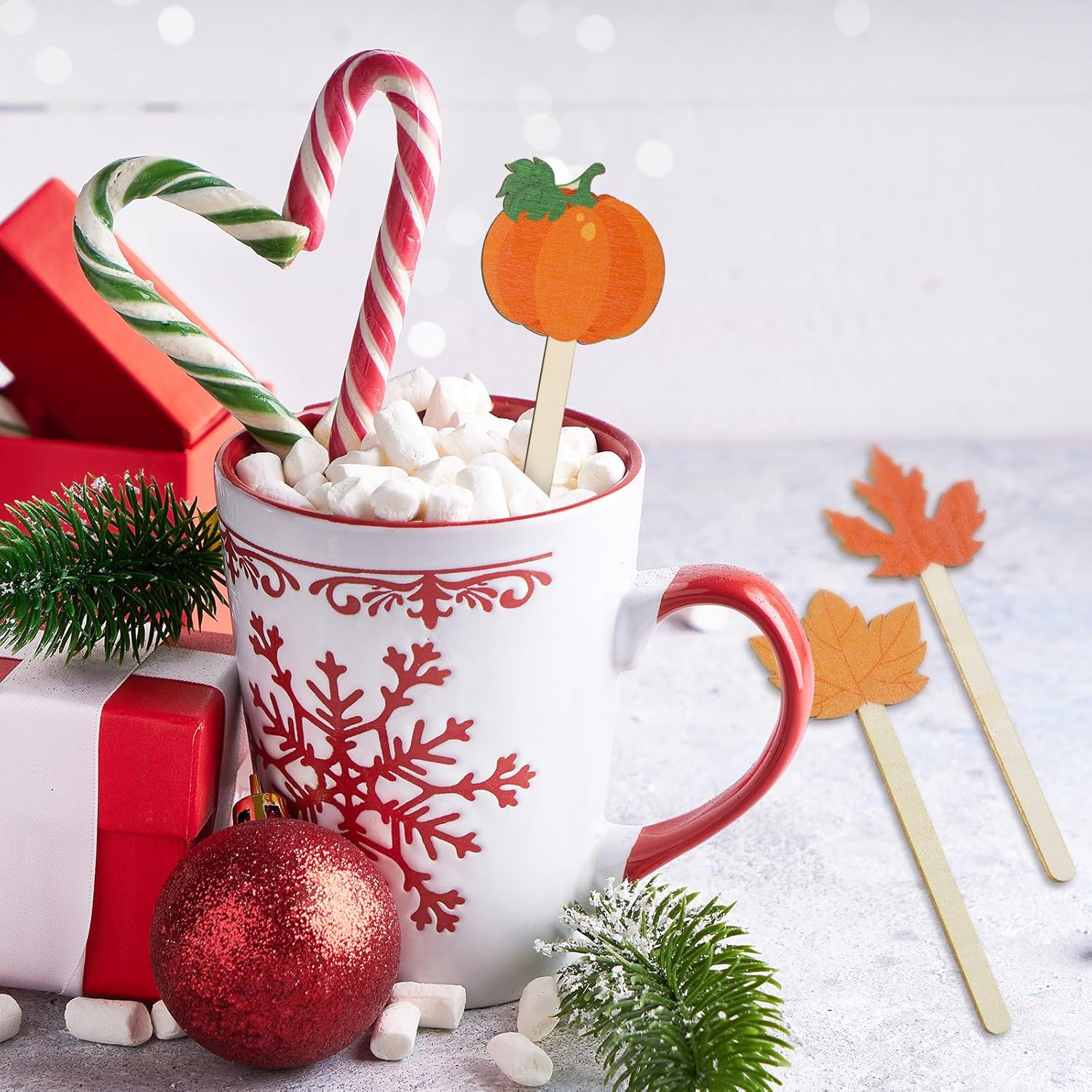 Jinei 120 Pcs Thanksgiving Coffee Stirrers Stir Sticks Natural Wooden Stir Sticks Disposable Drink Stirrers for Stirring Hot Chocolate Milkshake Restaurant Home Office