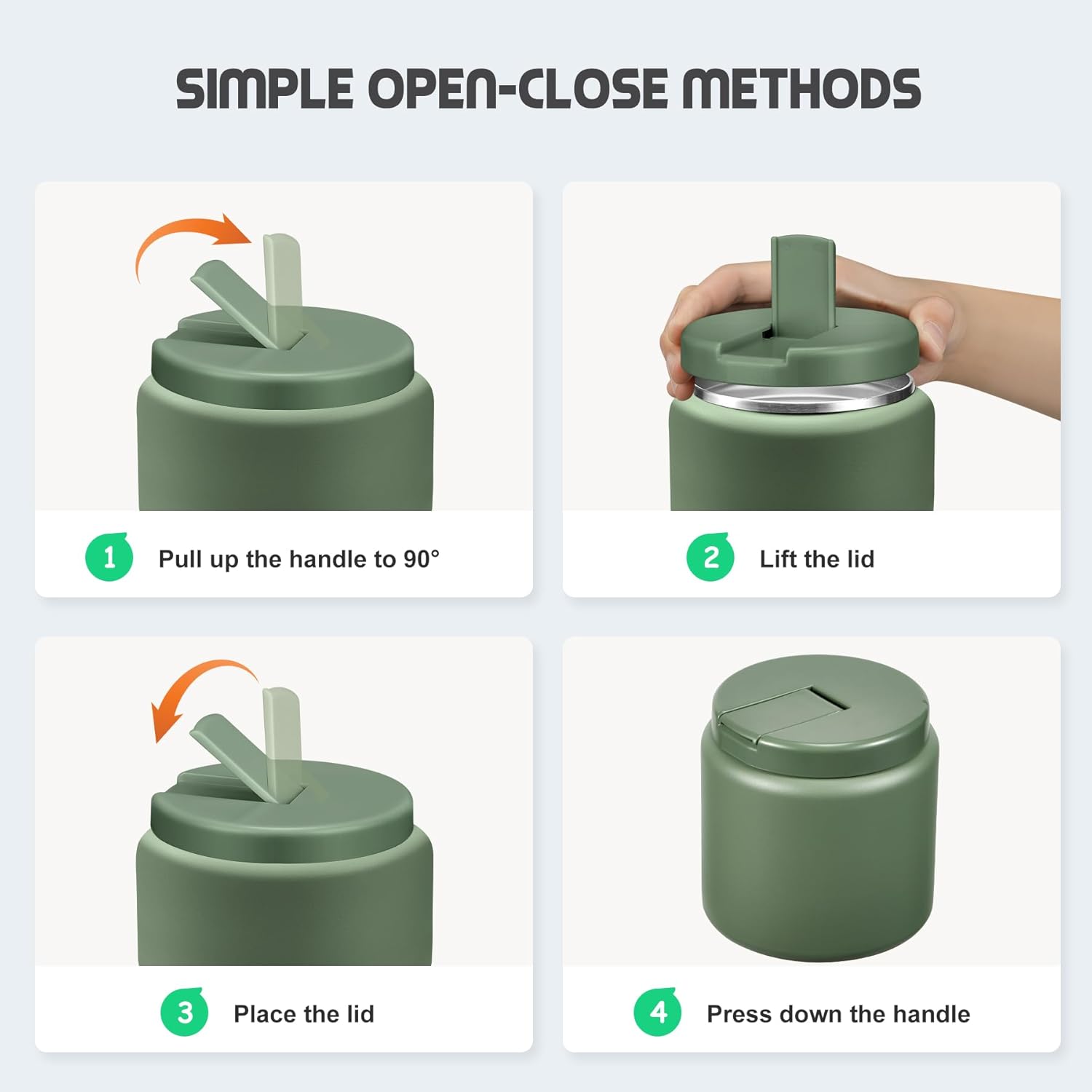 - Use Tips and Notes:In order to keep food hot or cold for a longer time, we recommend preheating/precooling with hot water/ice water for 5~10 minutes before putting food or soup into the food jar, and then put the food in. Note that when you disassemble the cover for cleaning and then reinstall it, be sure to lift the top of the cover before installing it. Otherwise, it will not be firm!!!