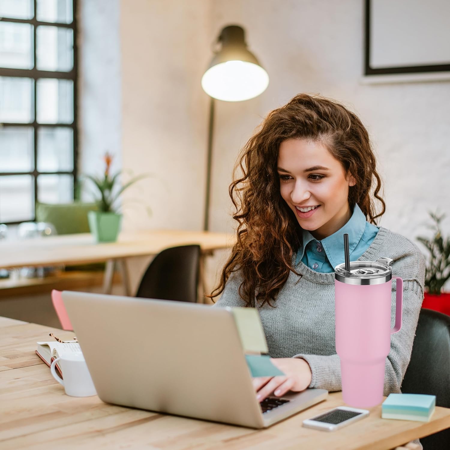 HASLE OUTFITTERS 40 oz Stainless Steel Tumbler with Handle, Vacuum Insulated Tumblers Bulk, Reusable Double Wall Travel Coffee Mug, Durable Powder Coated Water Bottle(Pink, 8)