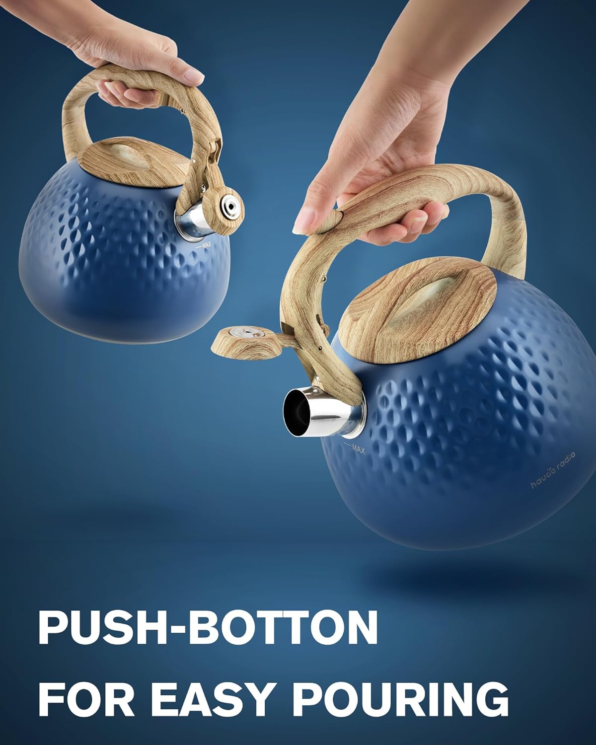 - Anti-Hot Teapots for stove top : The silicone coated handle is effectively insulated, the ergonomic shape and design adds comfort for pouring and filling, and there is a simple button on the handle so you can easily turn the nozzle on and off.