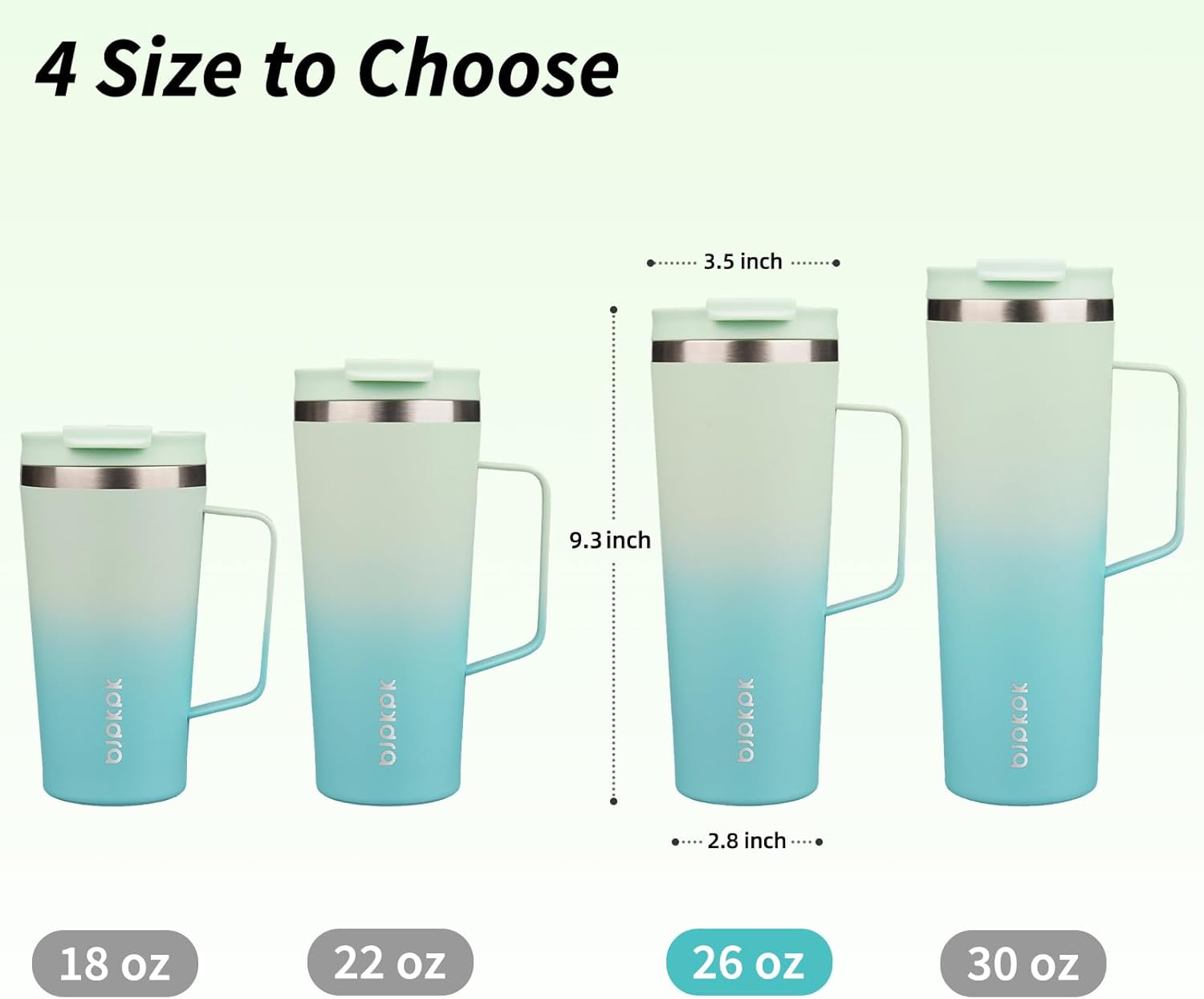 BJPKPK Insulated Tumbler with Handle, 26oz Insulated Tumblers with Lid and Straw, Stainless Steel Metal Water Bottles, Coffee Travel Mugs, Cups, Mint