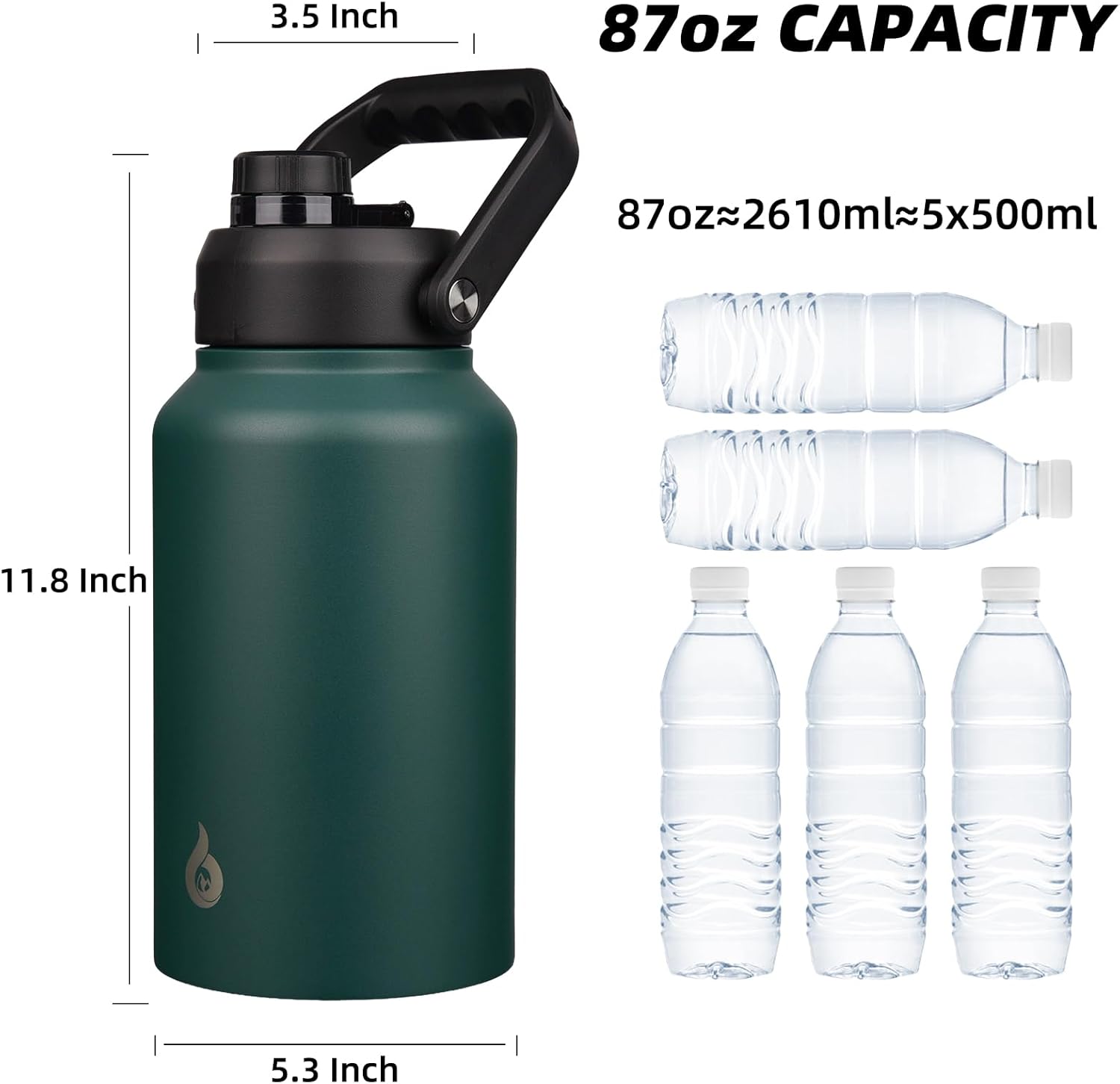 - INSULATED WATER BOTTLE: BJPKPK 87oz insulated water bottle use double-walled vacuum insulation technology to keep your beverage cold for up to 24 hours, or hot for up to 12 hours, make sure you enjoy your favorite beverages at the most suitable temperature all day.